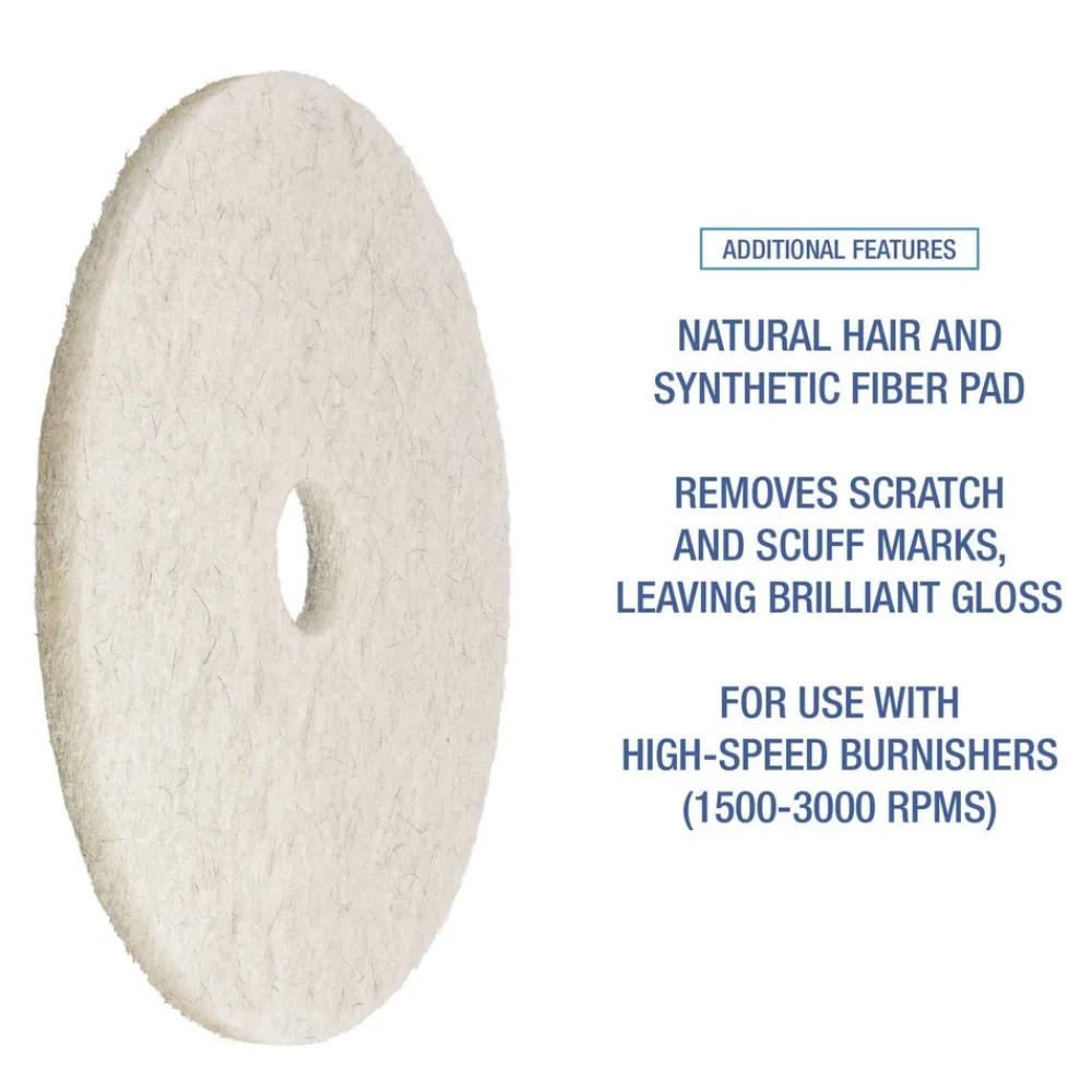 Take your floors to the next level with a natural and synthetic fiber, burnishing floor pad that removes unsightly scratches and scuff marks from floors. Add a brilliant, glossy shine to floors that welcomes customers and gives the right impression from the start. Value pad constructed from durable fibers that require less replacement. For use with ultra, high-speed burnishers (1500 to 3000 RPM).