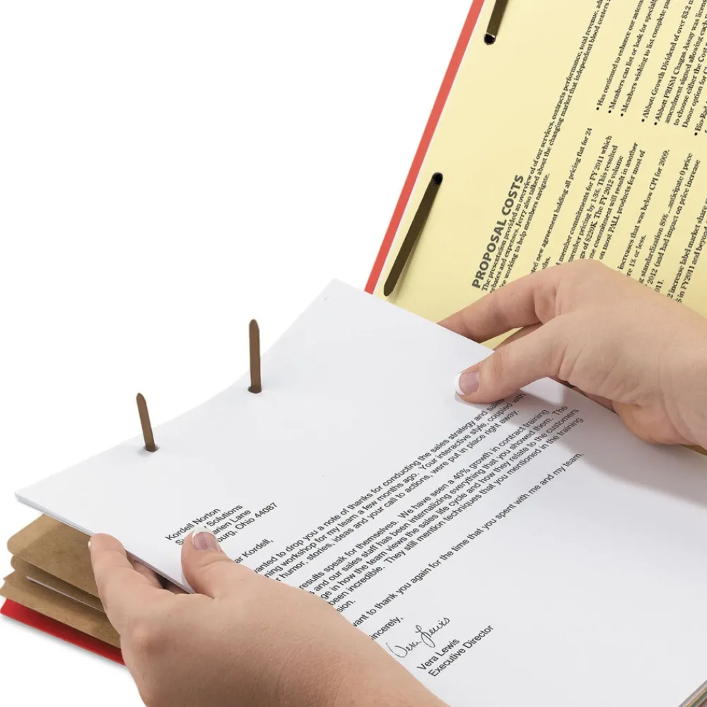 Partition folders with patented SafeSHIELD coated fasteners help prevent finger cuts, eliminate paper tears and reduce excessive fastener crinkling