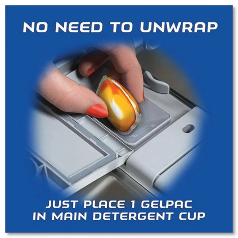 100% concentrated gel that gives dishes a deep clean. Pre-Soakers burst into action to scrub away tough food residues like baked-on lasagna and dried-on oatmeal. Gelpacs are easy-to-use. The pre-measured pods have a refreshing orange scent that are safe for septic systems. Leave dishes and glasses sparkling clean.