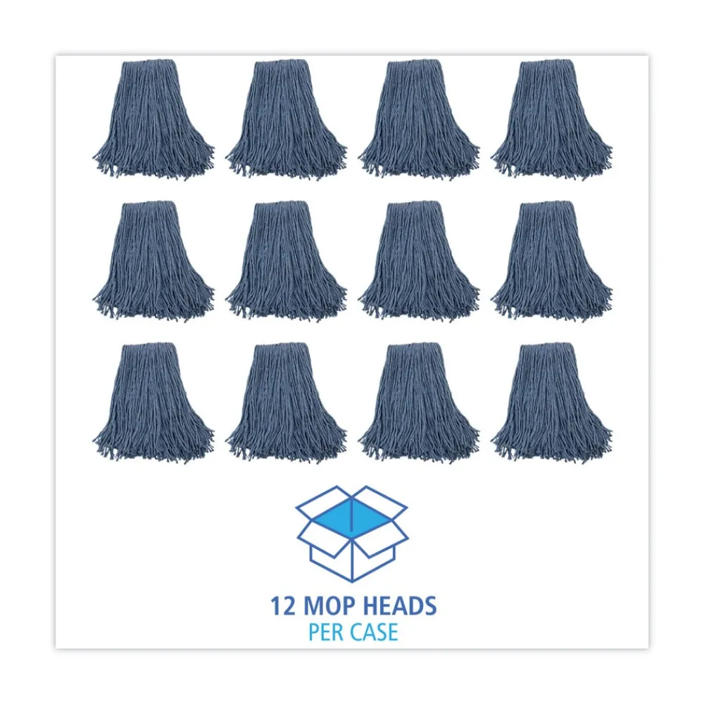 Boardwalk BWK2020B #20 Cut-End Cotton/Synthetic Fiber Standard Mop Head – Blue (12/Carton)