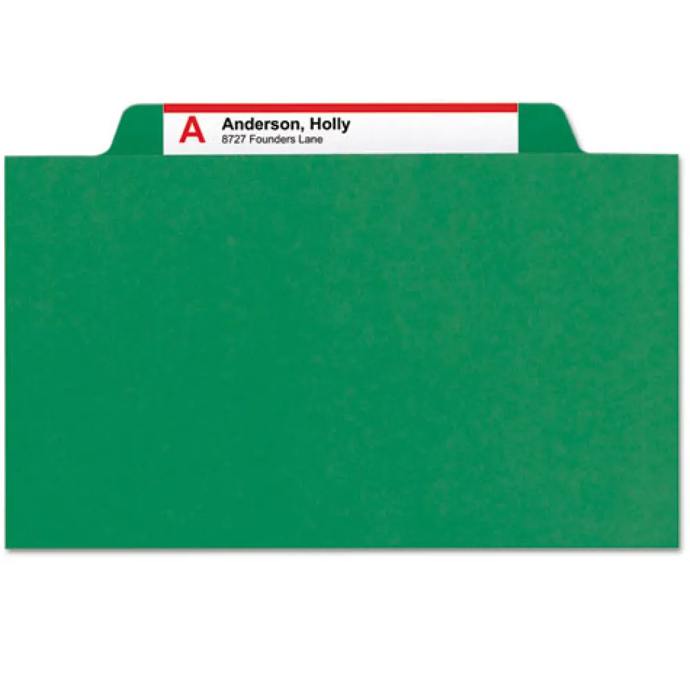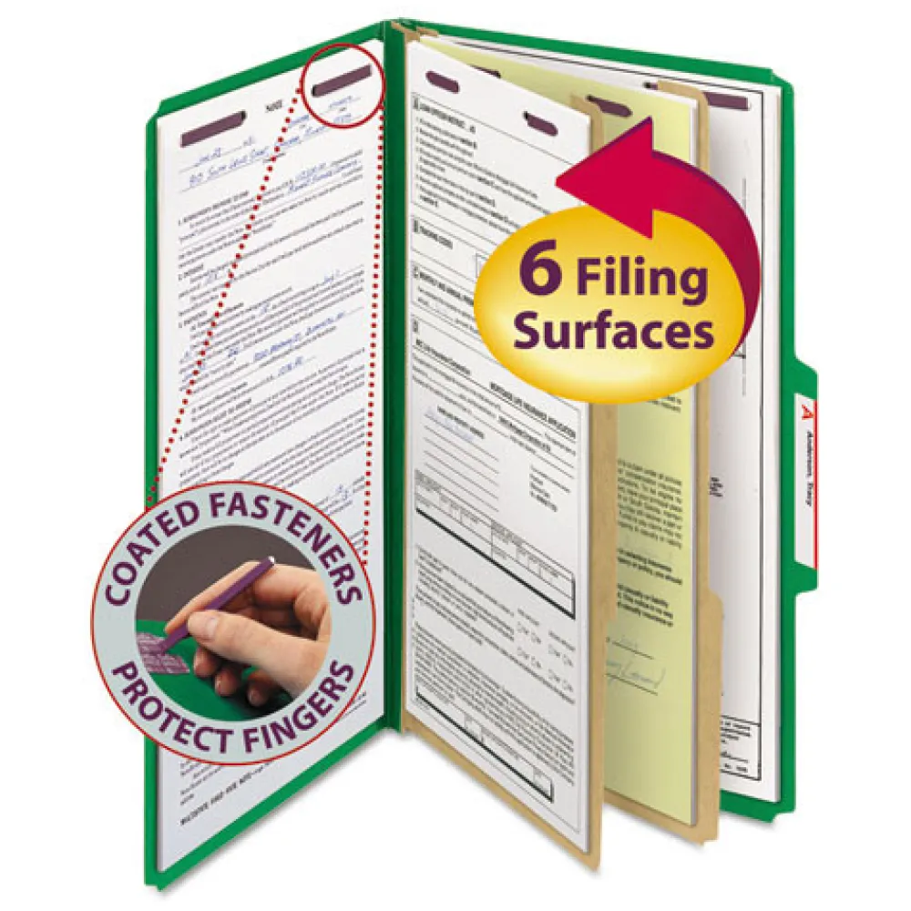 Smead 19033 Six SafeSHIELD Fasteners 2 Dividers Legal Size Six-Section Pressboard Top Tab Classification Folders – Green (10/Box)