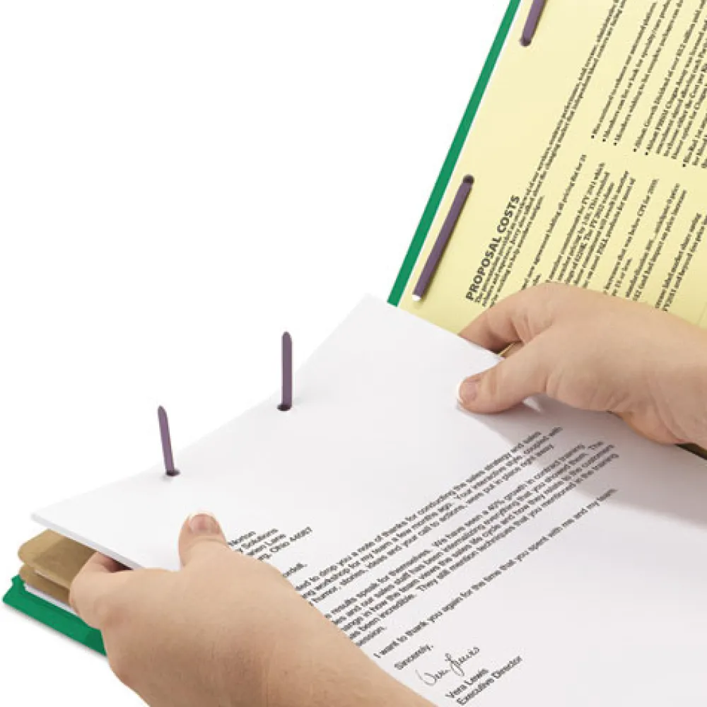 Protect your documents and fingers with Smead patented SafeSHIELD Coated Fastener Technology; the ultimate solution to fastener issues, including paper tears, finger cuts and excessive fastener crinkling. Use colors to signal category or type of project at a glance. Sturdy tear resistant gusset expands to hold up to 2 in. of material. Two dividers provide six filing surfaces for ultimate organization.