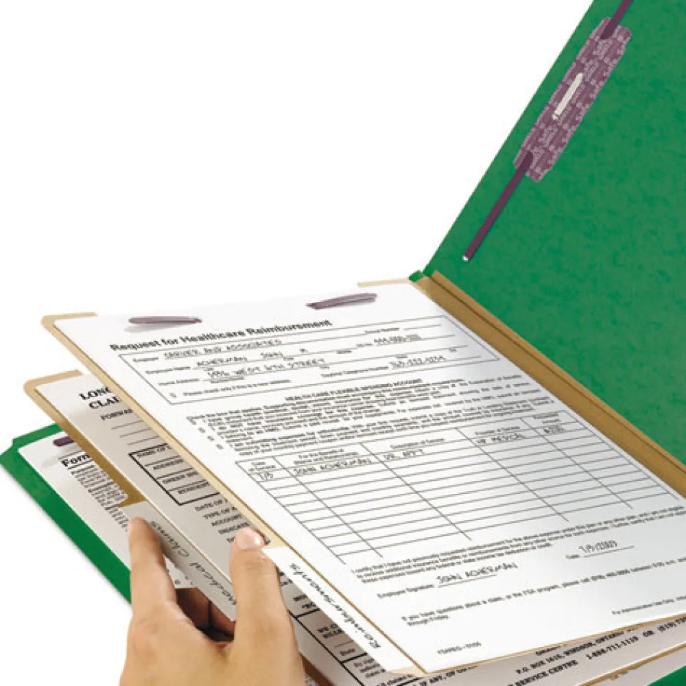 (10/Box) Six SafeSHIELD Fasteners 2 Dividers Legal Size Six-Section Pressboard Top Tab Classification Folders – Green – 19033