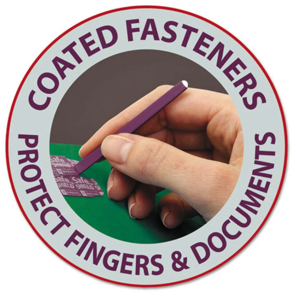 Partition folders with patented SafeSHIELD coated fasteners help prevent finger cuts, eliminate paper tears and reduce excessive fastener crinkling