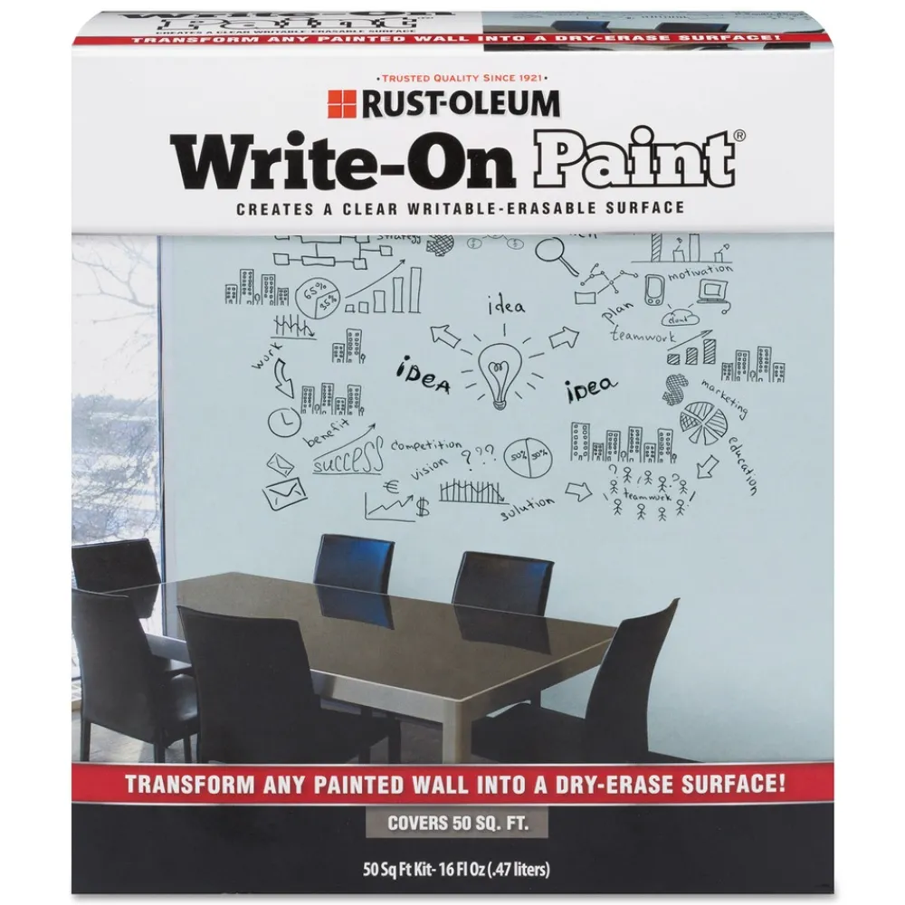 Rust-Oleum Write-On Paint allows you to turn any wall into a writable-erasable surface. Write-On Paint provides an area to create, express and explore your ideas. Ideal for offices, conference rooms, schools, industrial workstations and more.