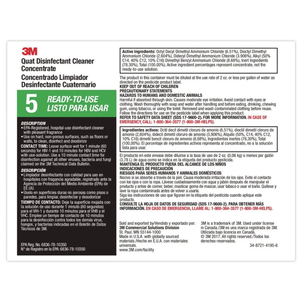 3M 7010386101 Quat Disinfectant Cleaner Concentrate Pleasant Scent 0.5 Gal Bottle 4/carton