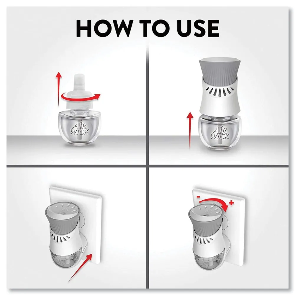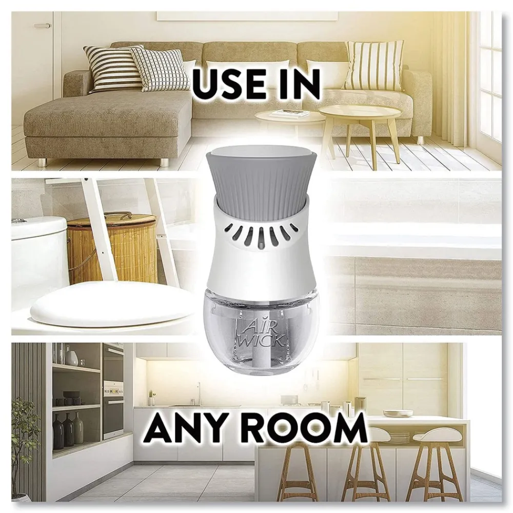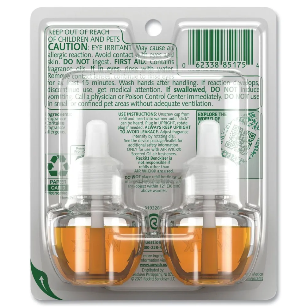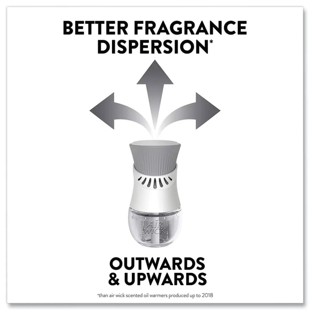 Leave a lasting impression on guests and ensure a consistent experience with Air Wick Scented Oil Refills with Essential Oils. Keep supply rooms stocked with the pleasant scents your guests come to associate with your business. Get up to 60 days per refill, on the lowest warmer setting, of natural-smelling fragrance with essential oil-infused formulas. Easily refill the Air Wick plug-in warmer by unscrewing the cap and inserting the refill until it clicks. Adjust the warmer settings to ensure the optimal fragrance for each room. Enhance entrances, common areas, offices, breakrooms and guest rooms with pleasant scents.