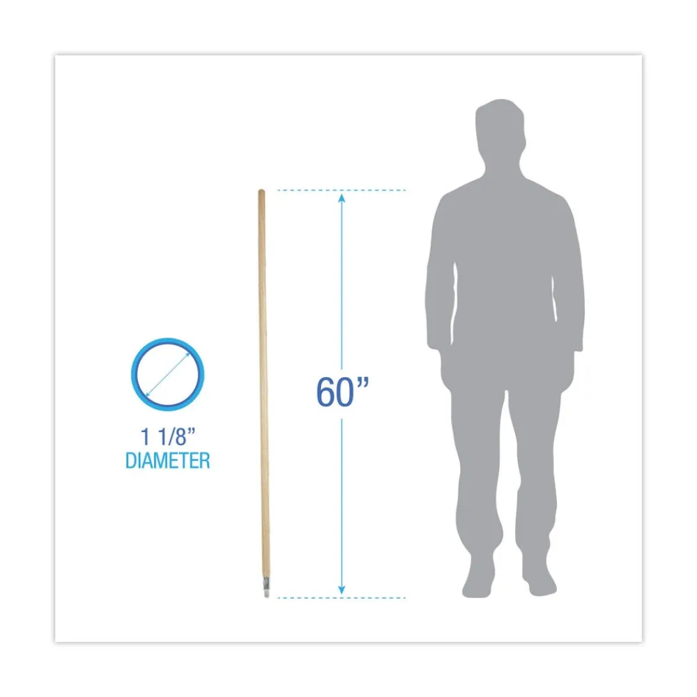 Boardwalk BWK138 1.13 in. Diameter x 60 in. Handle Length Metal Tip Threaded Hardwood Broom Handle – Natural