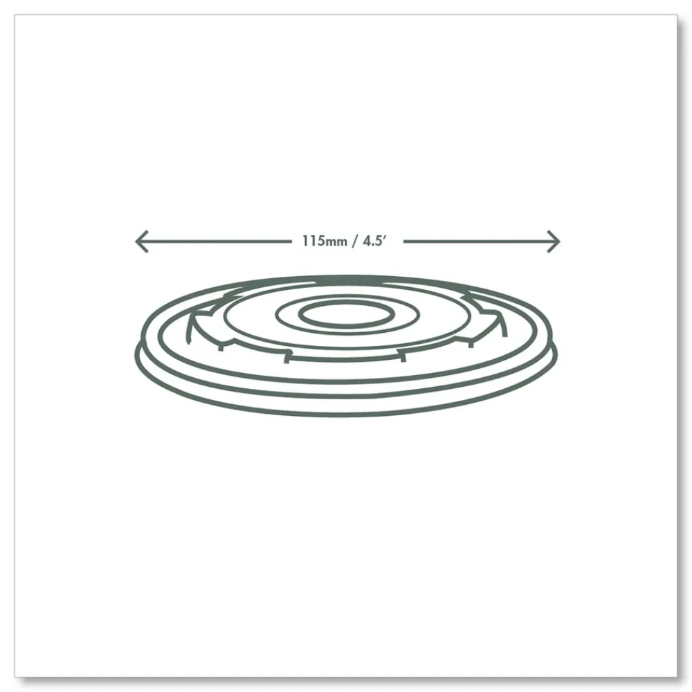 Flat lid for Vegware’s 115-Series soup containers. A practical no-hole lid for hot soups or stews. Made from CPLA, a renewable material made from plants. Award-winning quality by Vegware, made from plants. Commercially compostable where accepted.