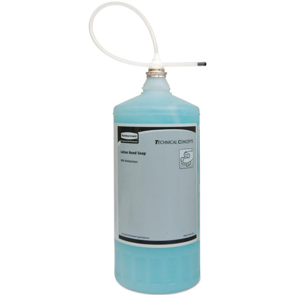 Rubbermaid Commercial Enriched Hand Soap Lotion with Moisturizers is a high-capacity refill designed for One Shot and manual liquid soap dispensers. Each hand soap refill averages up to 2000 hand washes for reduced labor and soap costs. This lotion dispenser soap is enriched with glycerin, silk proteins, aloe Vera, and vitamin E. The rich, pearlized teal soap is biodegradable, hypoallergenic and features a light passion fruit flower scent.