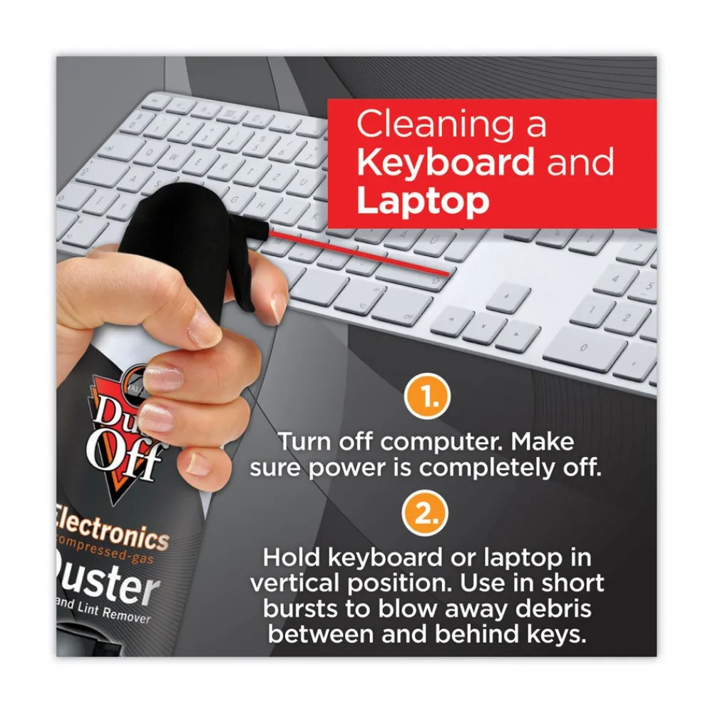 Dust-Off disposable dusters provide potent dust-removing power for practically any task. Ideal for cleaning technology like keyboards, laptops and CPUs. But it’s not just for electronics! Dust-Off dusters are also great for cleaning items in the home such as collectibles, window blinds, lamp shades, craft projects and sewing machines. Each duster includes extension tube to get in hard-to-reach places. Contains a bitterant to help discourage inhalant abuse.