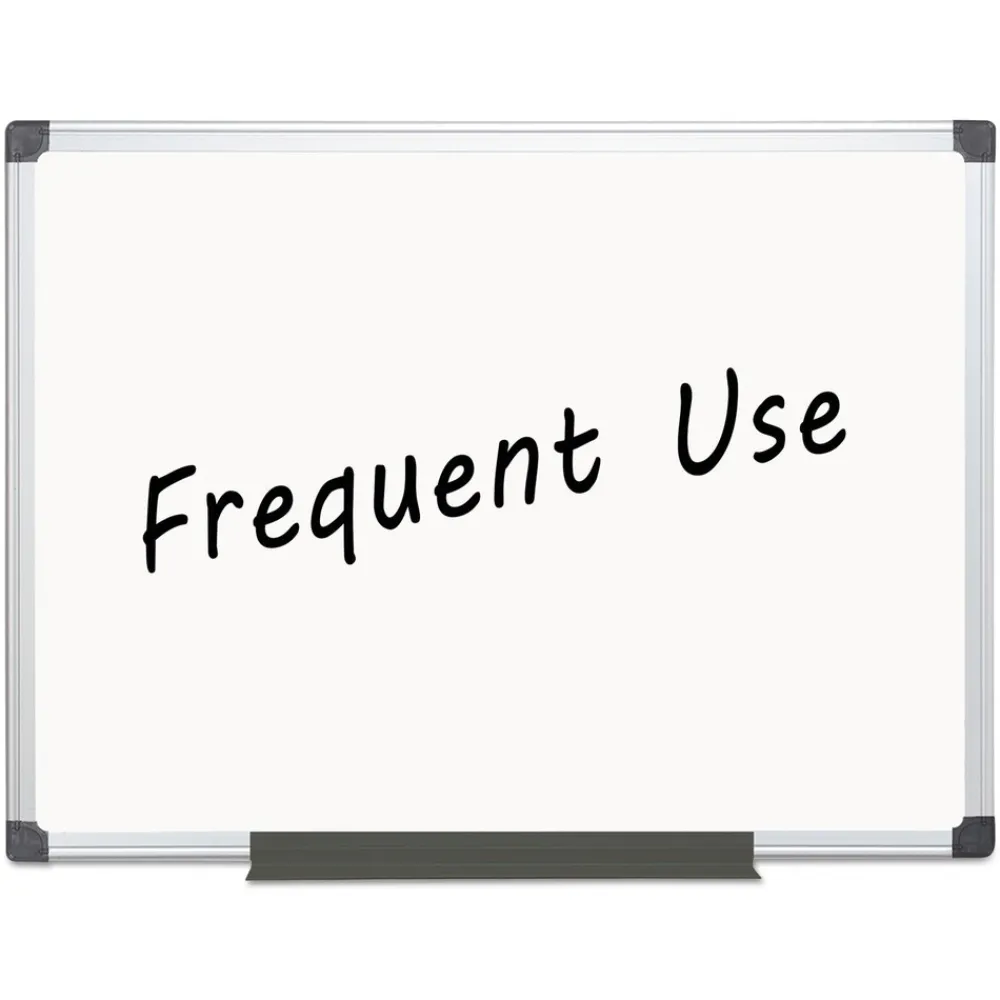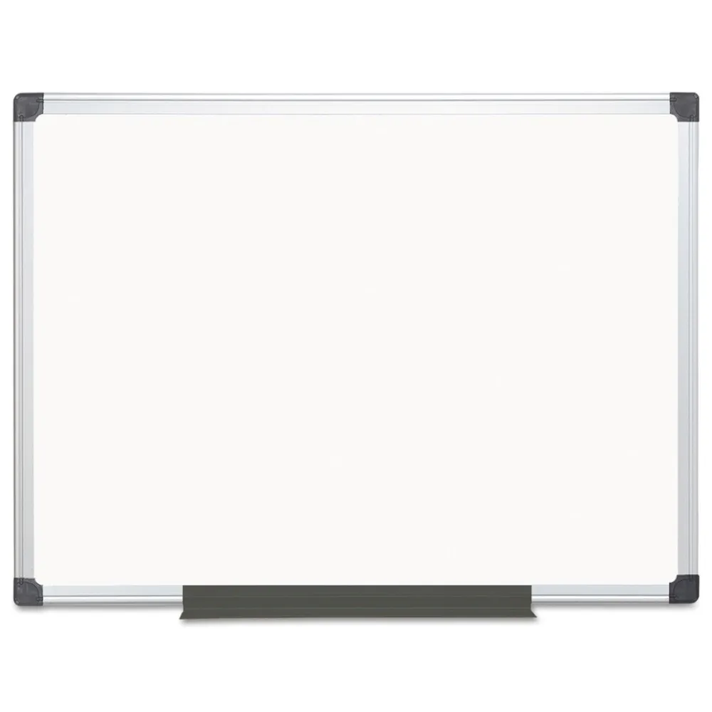 The Maya Magnetic Steel Dry-erase Board features a durable whiteboard surface and high-quality appearance through years of frequent use. Magnetic surface allows you to instantly post messages or attach your magnetic accessories. The professional Maya aluminum frame includes a four-corner mounting system that can be positioned either vertically or horizontally to provide versatility when reconfiguring an office or where wall space is limited. The adjustable pen tray offers a convenient way to keep your writing utensils within quick reach. This dry-erase board is perfect for classrooms, offices, training environments, meeting rooms and more.