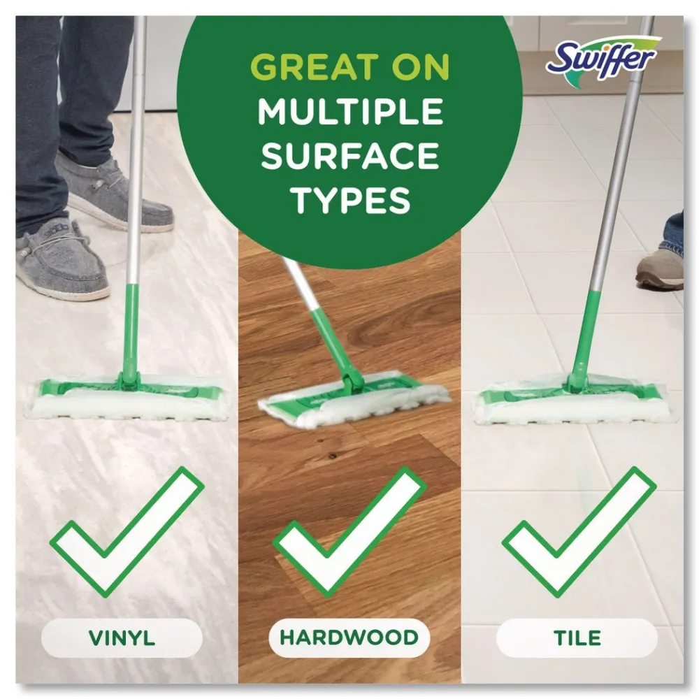 Use Swiffer dry cloth refills on floors and hard-to-reach places above the floor. These Swiffer pad refills leave no residue and are safe for wood floors, ceramic and vinyl tile, electronics, and other hard surfaces. Convenient disposable cloths eliminate the fuss of dust mops. Simply use and throw away.