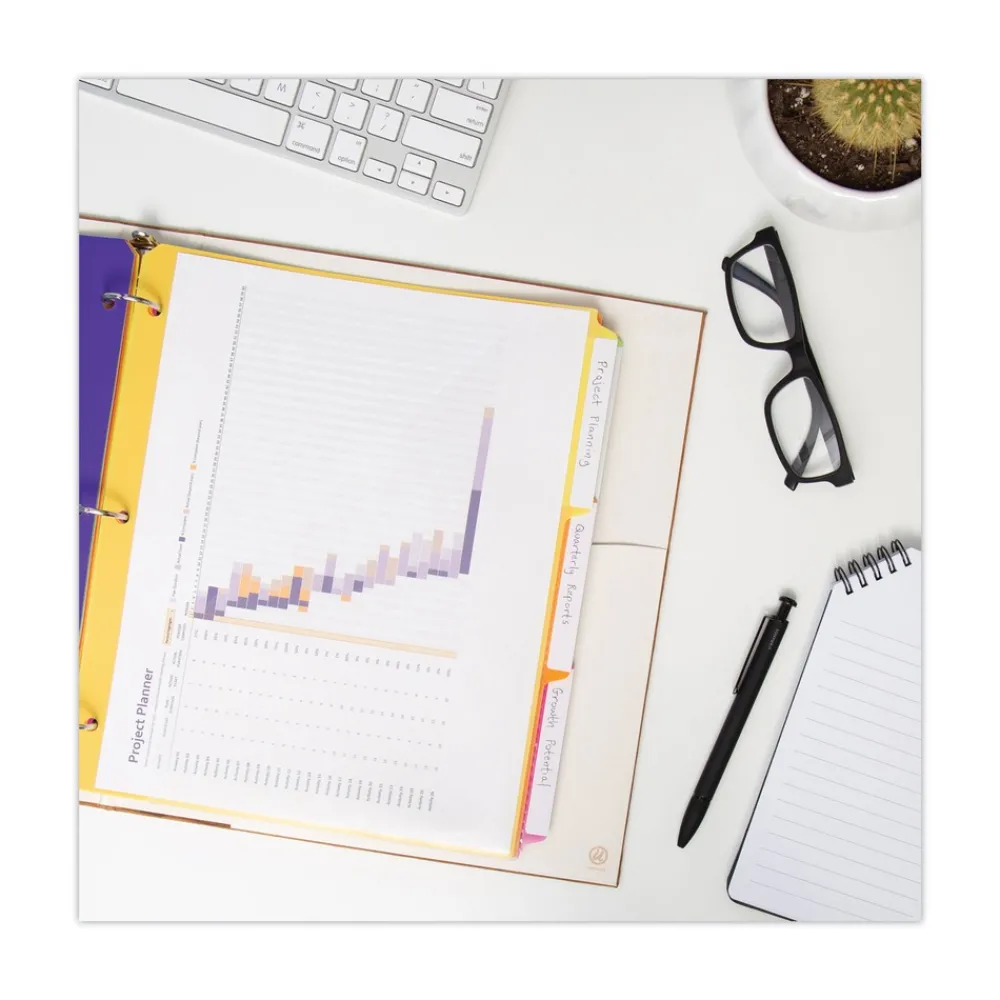 Index dividers are brightly colored with oversized tabs for easy, clear labeling