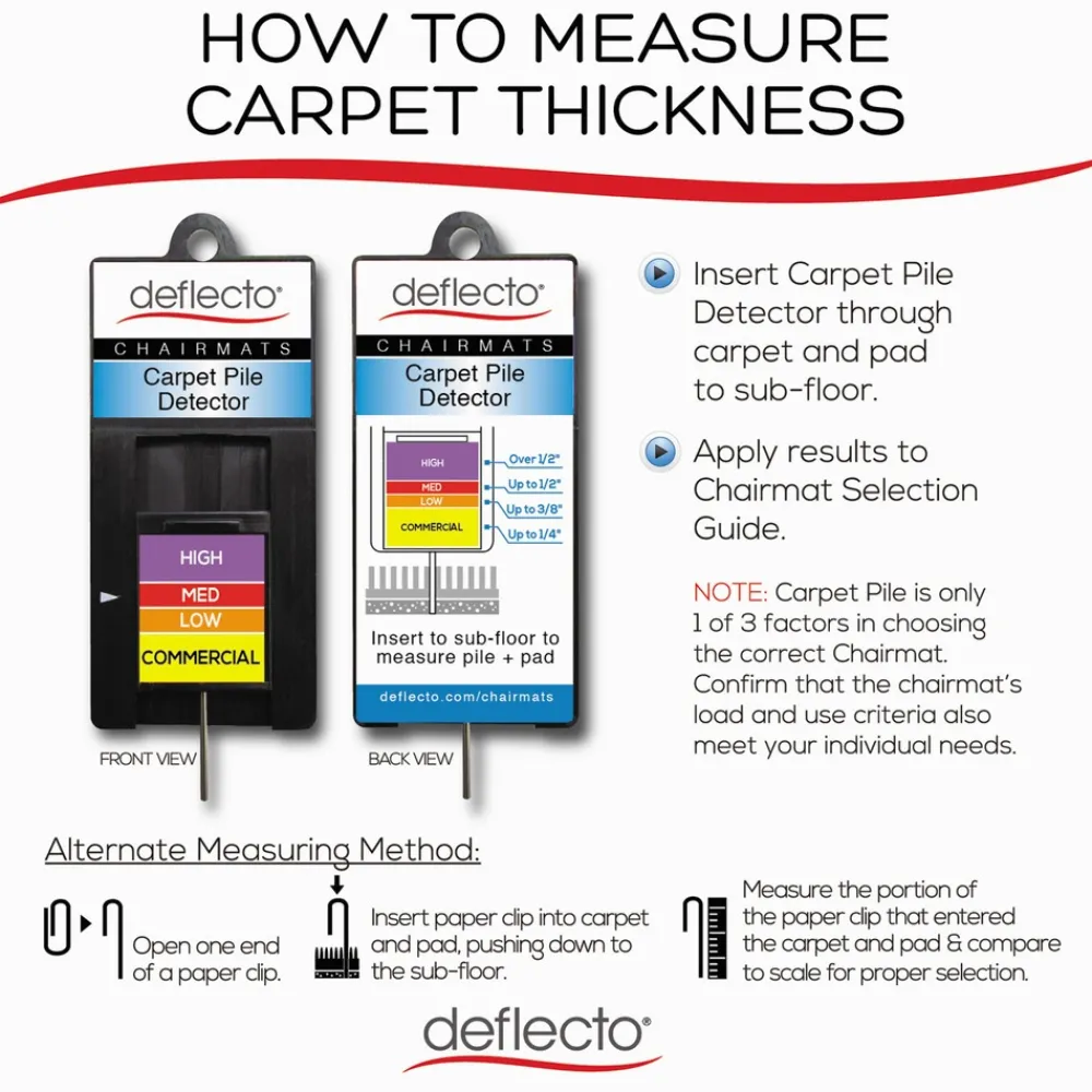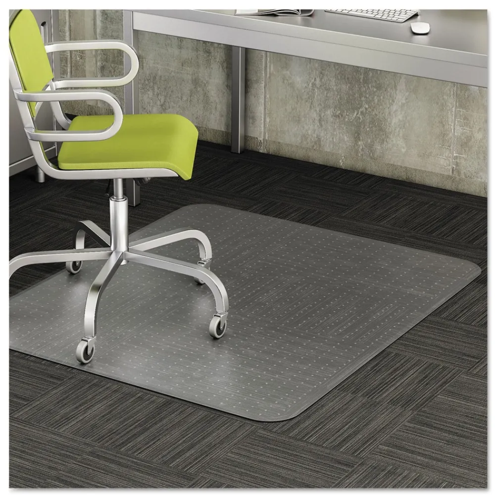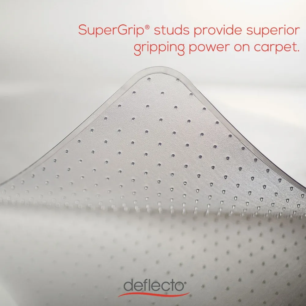 Lightweight, durable performance for moderate use on carpets up to 0.38″ thick. Easy-glide rolling surface provides effortless chair movement. Studded design secures mat from moving while protecting carpet from caster wear, spills and heavy traffic. Free and Clear non-phthalate, non-cadmium formula promotes a healthy work environment while offering exceptional clarity and durability. Smooth beveled edge for easy carpet-to-mat transition.