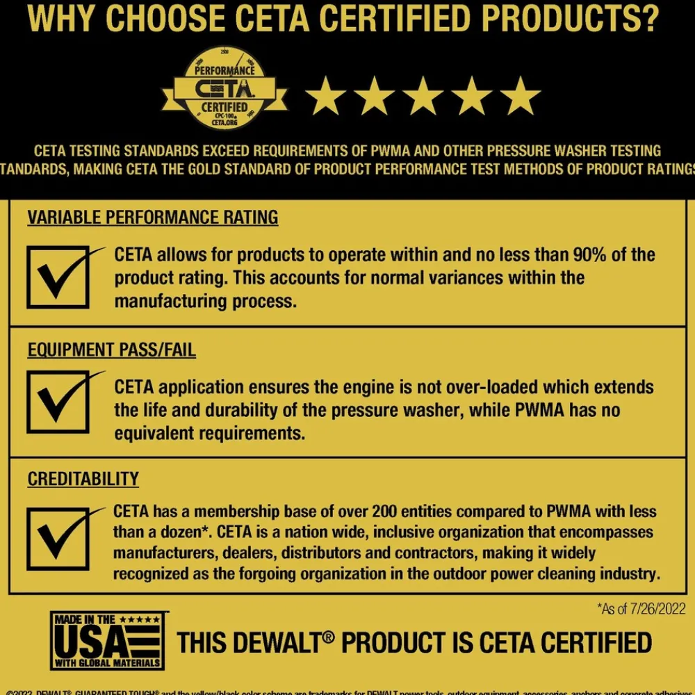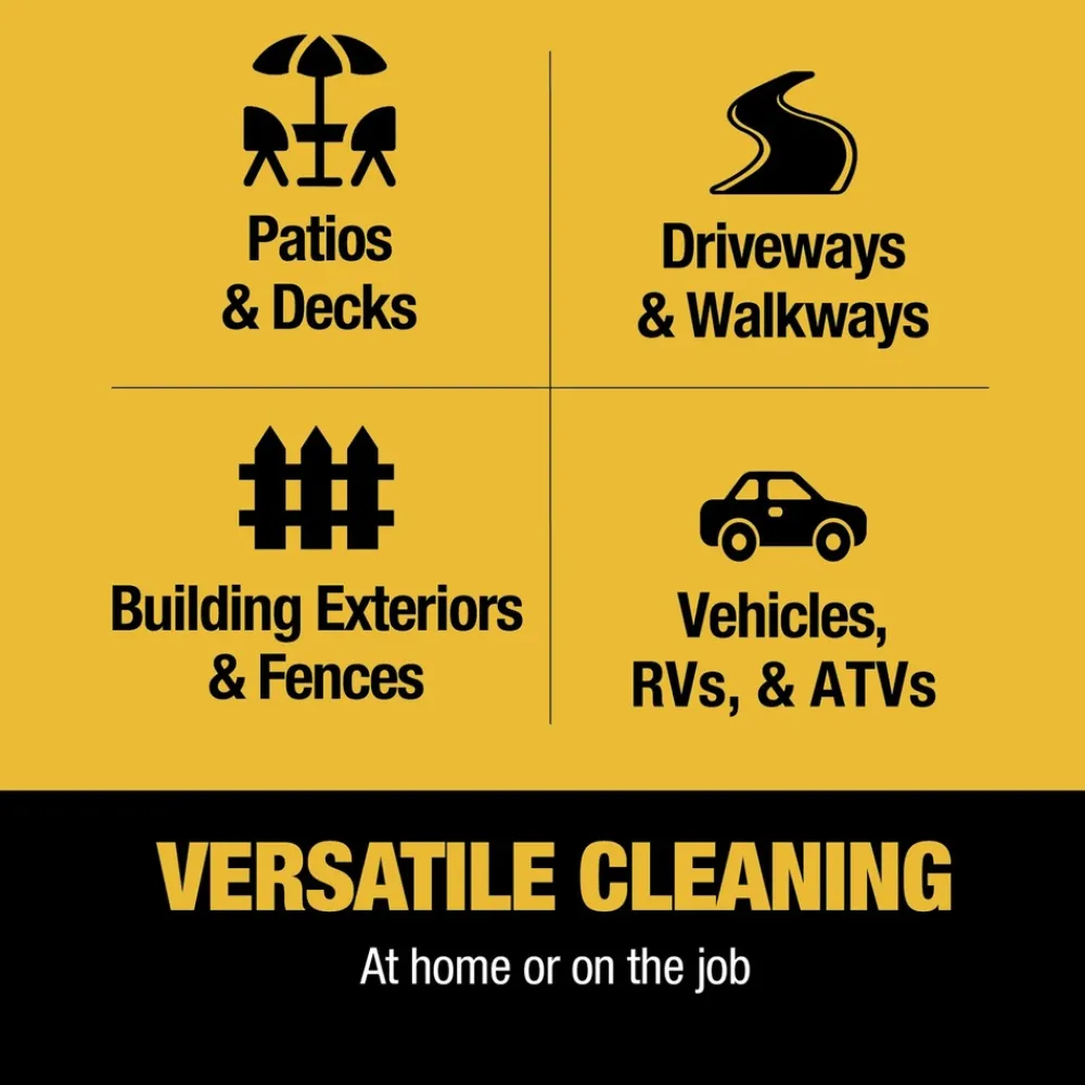 DEWALT pressure washer units and accessories are GUARANTEED TOUGH. Built to meet the rigorous demands of the cleaning professional or anyone who expects the most out their machine. Perfect for deck cleaning, wood restoration, paint preparation, graffiti removal and all other professional cleaning services.