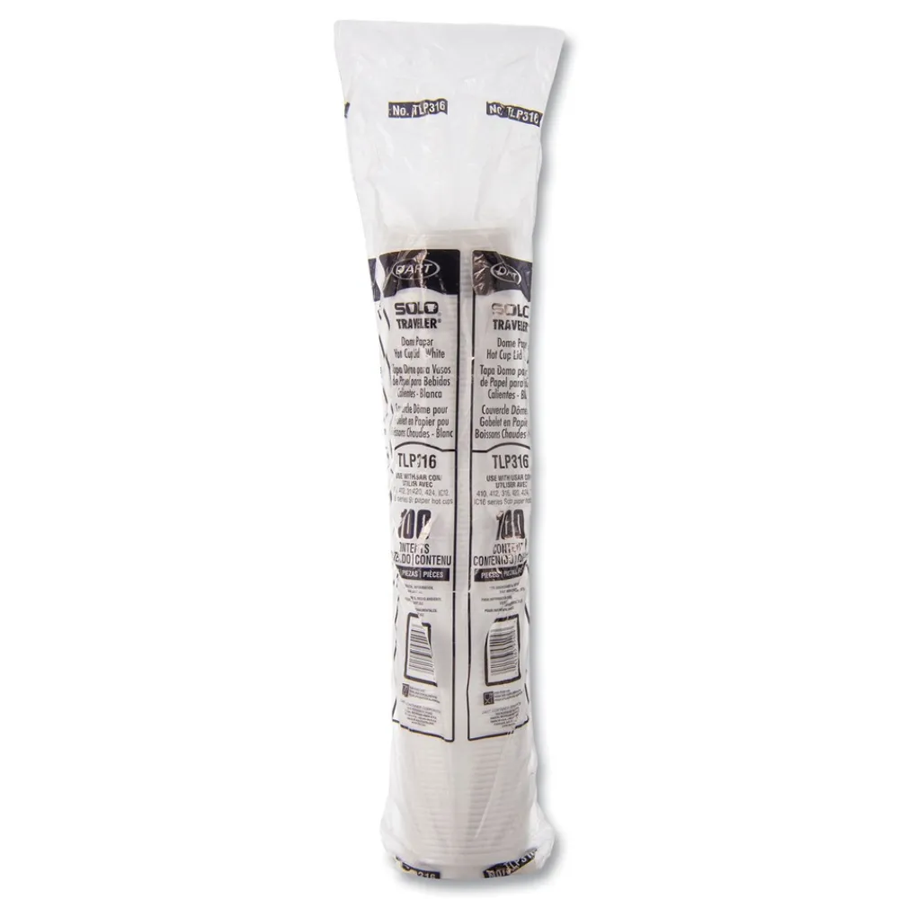SOLO TLP316-0007 Traveler Cappuccino Style Dome Lid for 10 oz. to 24 oz. Cups – White (100/Pack, 10 Packs/Carton)