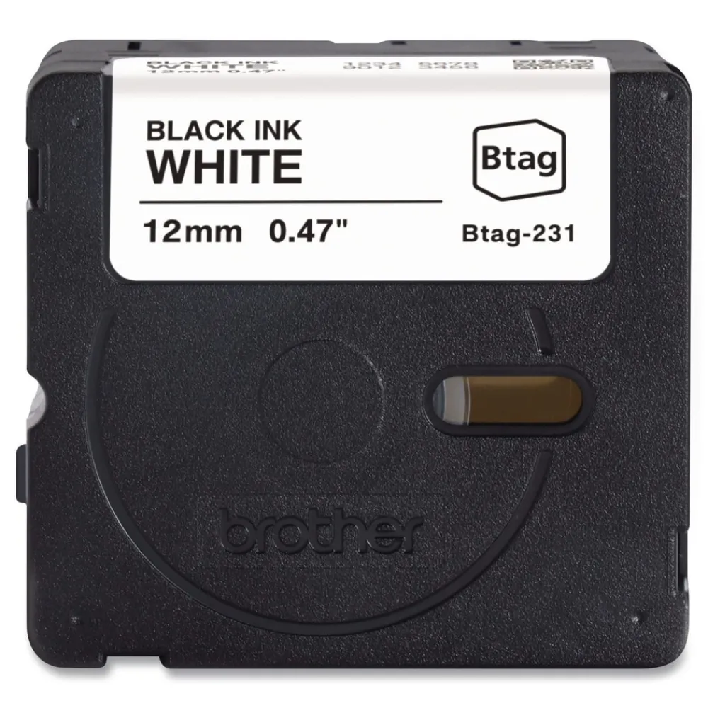 0.47 in. x 13.1 ft. Genuine P-Touch BTAG Label Tapes – Black on White – BTAG231