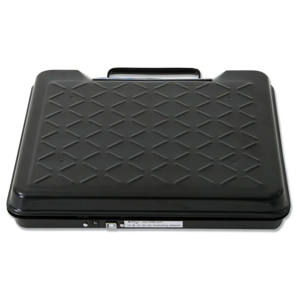 Portable bench scale which is designed for greater accuracy with attached handle. Weight hold key locks weight reading when a larger package blocks the display. Internal backlit display with four 1 in. high LCD digits for easy visibility. Discreet keyboard technology. Electro-mechanic design. 22-gauge steel base. Auto-zero tracking and manual zero return. 250 lbs. capacity. Programmable auto-shut-down.