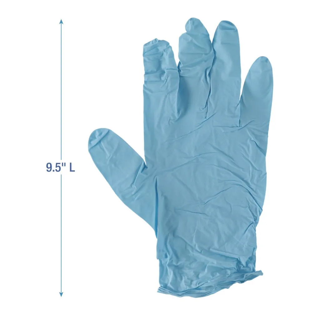 (100/Box) 5 mil 9.5 in. Long Powder-Free Disposable Examination Nitrile Gloves – Large, Blue – 382LBXA