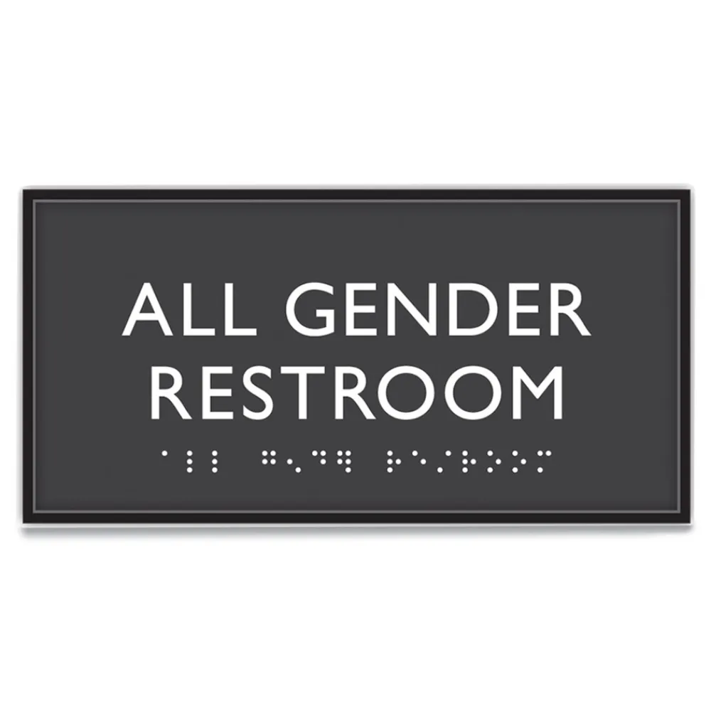 4 in. x 8 in. All Gender Restroom Plastic ADA Sign – Clear/White Floor Signs
