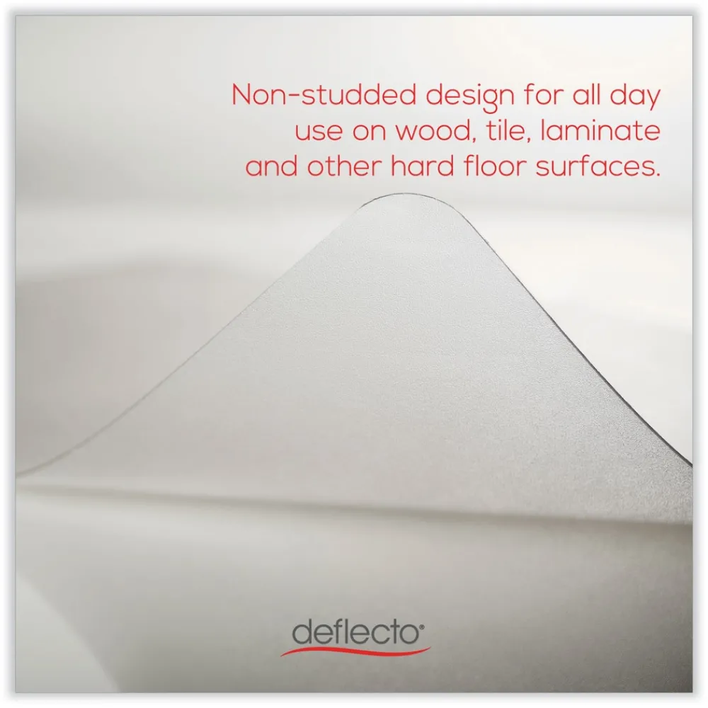 Thinner, lightweight, non-studded EconoMat for hard floors is an excellent value for anyone looking for an all-day use office chair mat to protect wood, tile, laminate and other hard floor surfaces. Easy-glide rolling surface provides smooth office chair movement to help minimize stress and strain on users back, legs and feet, and protects floors from caster wear, spills and heavy traffic. Free and Clear non-orthophthalate, non-cadmium formula promotes a healthy work environment and delivers exceptional clarity without harsh chemicals.