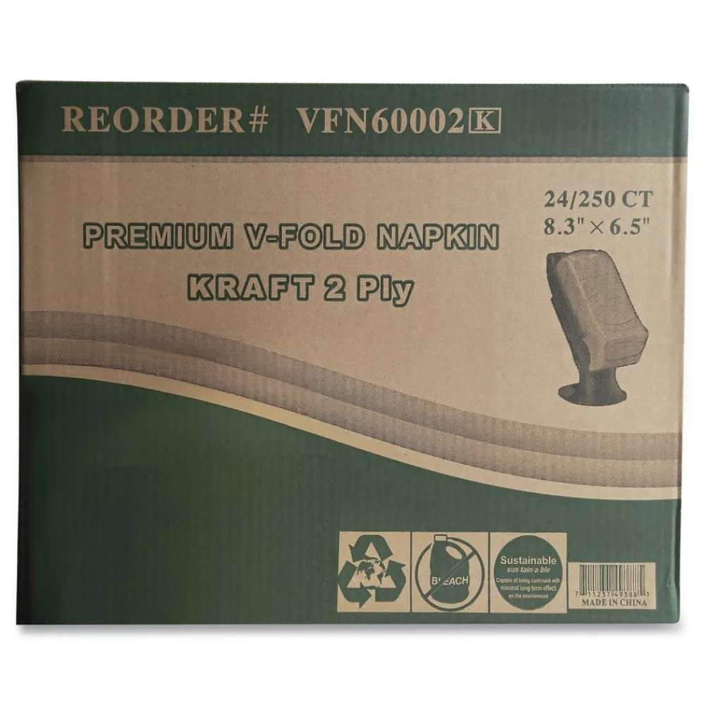 (6000/Carton) 6.5 x 5 Premium Interfold Pop-Up Dispenser Napkin – Brown – VFN60002K