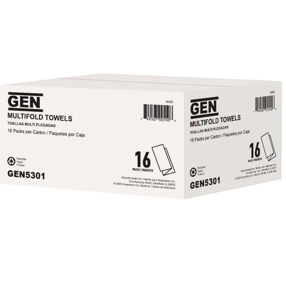 GEN 5301 9.25 in. x 9.05 in. 1-Ply Multifold Towels – White (16/Carton)