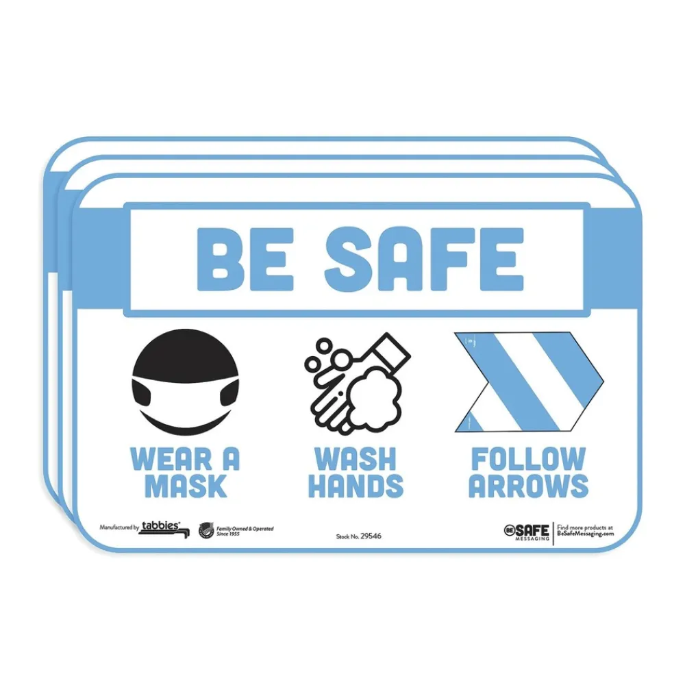 Promote safety at your home, school, office or any public place during COVID-19 with our BeSafe wall safety signs. All wall signage can be reused and repositioned easily on most surfaces including glass, metal and plastics without peeling. Simple to install just peel and stick to any wall. This 9 in. x 6 in. safety sign is sold as a 3 pack.