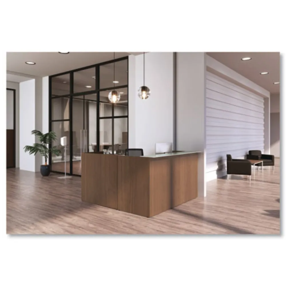 HON offers you an easily accessible sanitizing station stand that, when used with a hand sanitizer dispenser and your favorite hand sanitizer, helps employees stay bacteria free while on-the-go. Place throughout your facilities in high traffic areas for a quick way to fight germs between meetings or restroom visits. Compatible with most manufacturers’ standard hand sanitizer dispensers. Free standing and no assembly required. Metal base for added stability.
