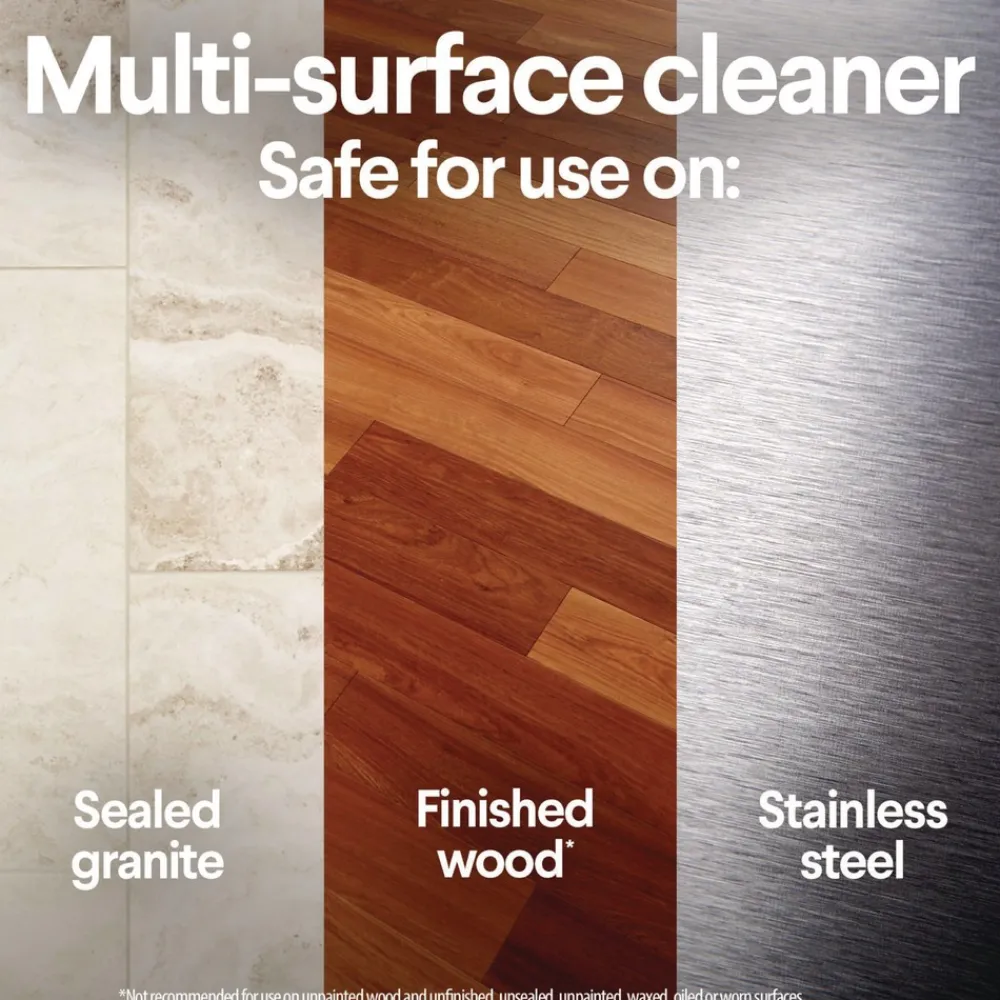 Multi-surface cleaning wipes are safe for finished wood, sealed granite and stainless steel; use on non-food-contact surfaces in the home, office, classroom, pet area, dorm, locker room and more