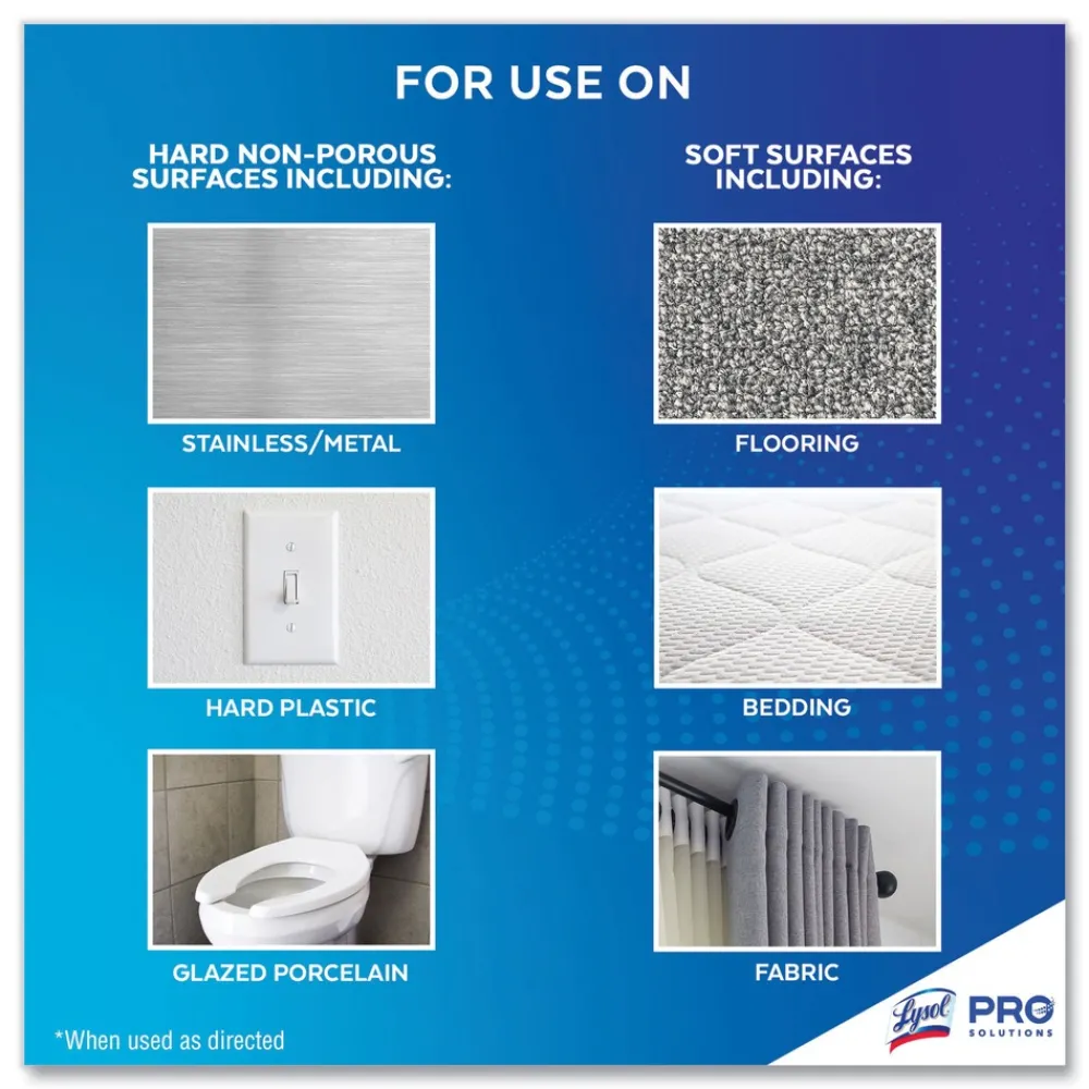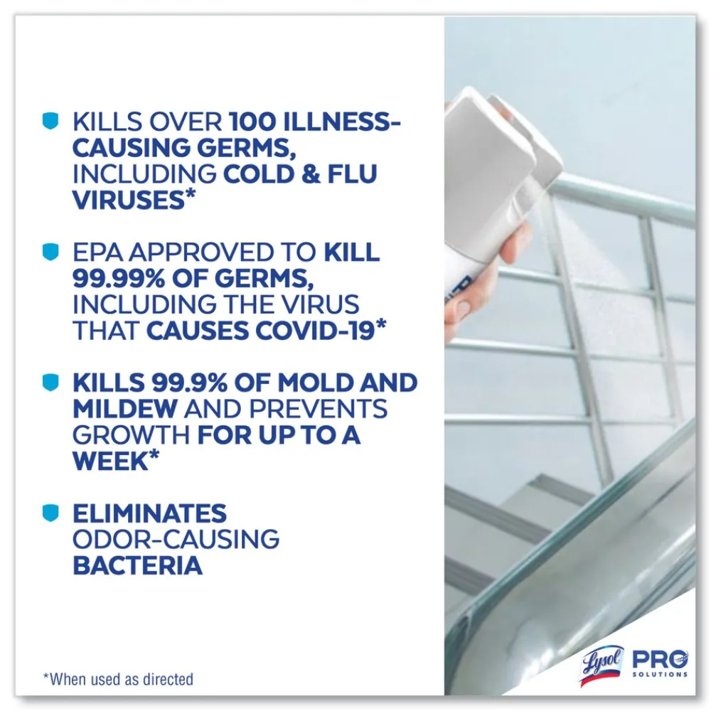 Get maximum versatility with minimal effort with Lysol Disinfectant Spray that’s safe to use on hard and soft surfaces. Lysol kills 99.9% of viruses and bacteria, including the virus that causes COVID-19 in 15 seconds, as well as cold and flu viruses when used as directed. Help protect high-traffic areas and high-touch surfaces, including desks, bathrooms, doorknobs, and railings. Deliver hospital-type disinfection on to soft surfaces, including upholstery, curtains, sofas, mattresses, and cushions. Meet customer and staff expectations around disinfection. Simply spray and let air dry.