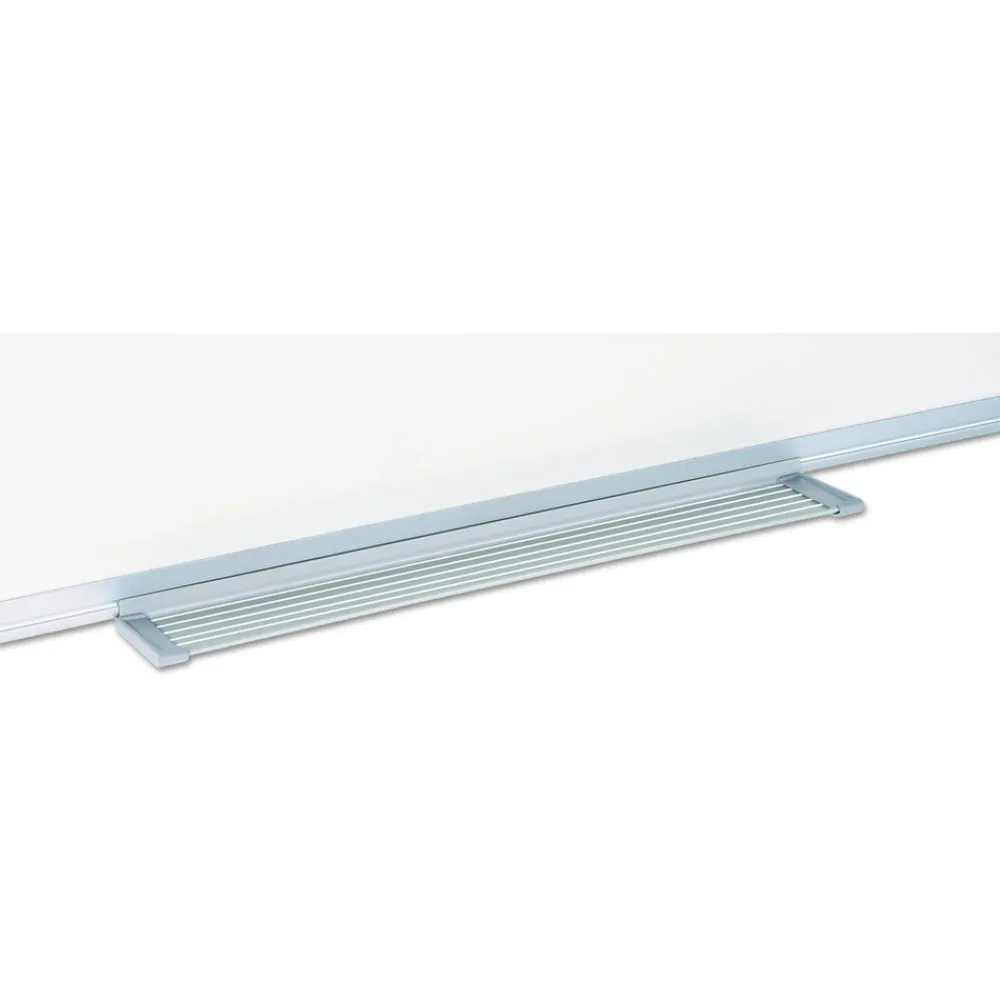 The MasterVision Earth Magnetic Steel Dry Erase Board is a solution that combines the best in writing and cleaning performance with professional Maya frame quality. Made from recycled and recyclable materials, this board is suitable for frequent use. The magnetic surface cleans easily and features a sturdy aluminum frame that has an easy 4-corner mounting system that can be positioned either vertically or horizontally, offering versatility when reconfiguring an office or where wall space is limited. The adjustable pen tray offers a convenient way to keep your writing utensils within quick reach.