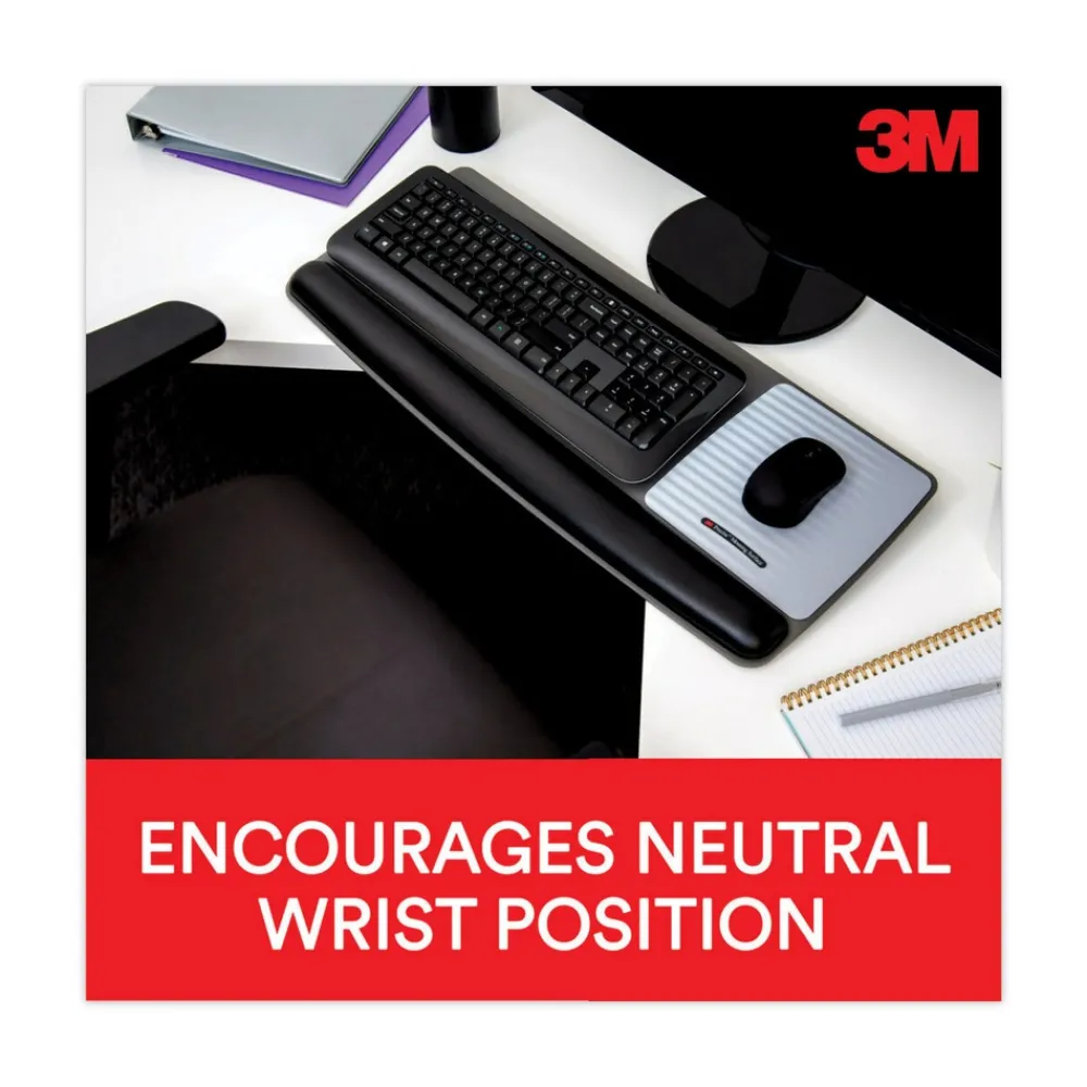3M WR422LE 25.5 in. x 10.6 in. Antimicrobial Gel Mouse Pad/Keyboard Wrist Rest Platform – Black/Silver