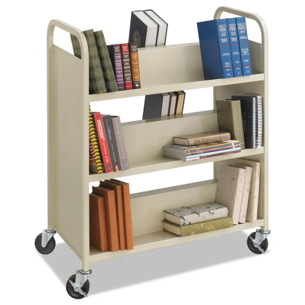 Safco 5357SA 36 in. x 18.5 in. x 43.5 in. 300 lbs. Capacity 6 Shelves Metal Steel Double-Sided Book Cart – Sand