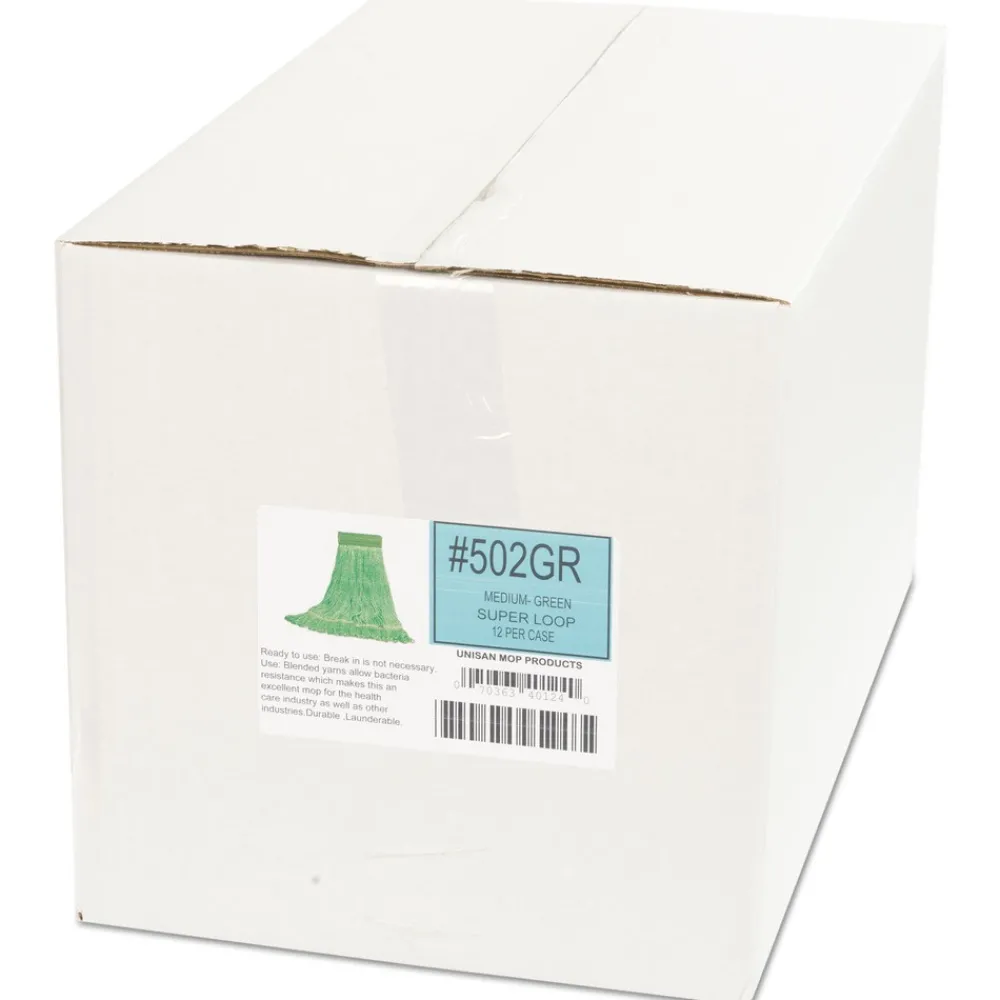 (12/Carton) 5 in. Super Loop Cotton/Synthetic Fiber Wet Mop Head – Medium, Green – 502GNCT