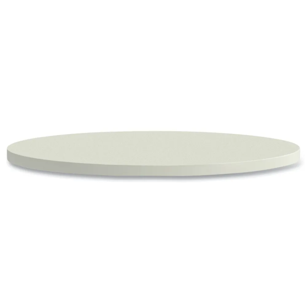 The round work surface brings everyone closer to their work. Scratch-, spill- and stain-resistant laminate stands up to heavy use. Easily attach a base using pre-drilled holes. Thick work surface provides a sturdy foundation for work. Durable edge-band provides a smooth, comfortable edge.