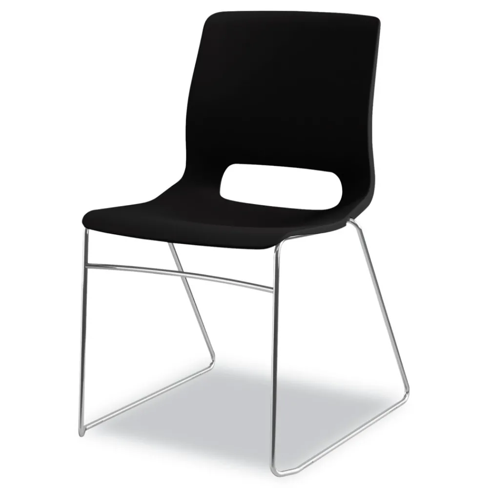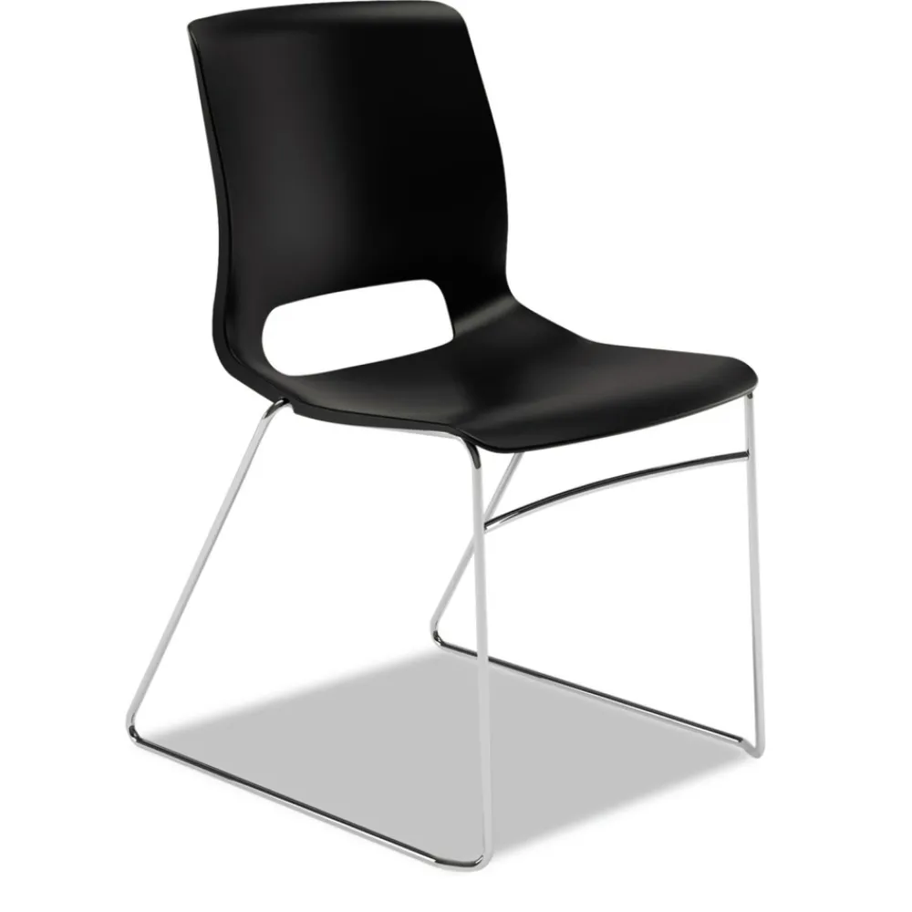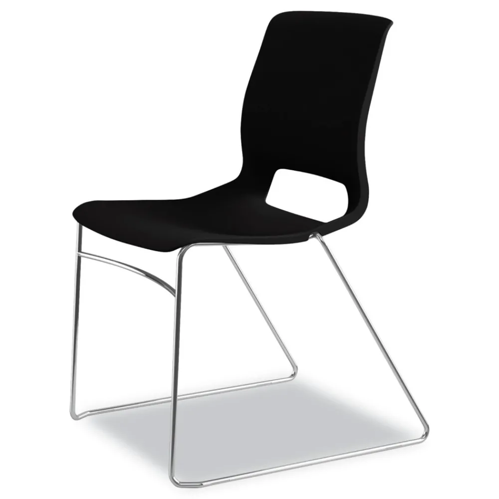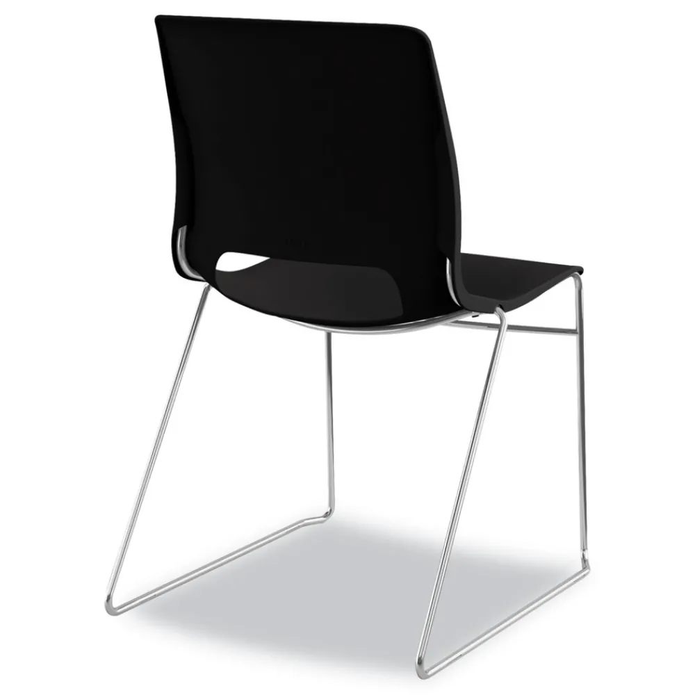 (4/Carton) Supports Up to 300 lbs. 17.75 in. Seat Height Motivate High-Density Stacking Chair – Onyx Seat, Black Back, Chrome Base – MS101ON