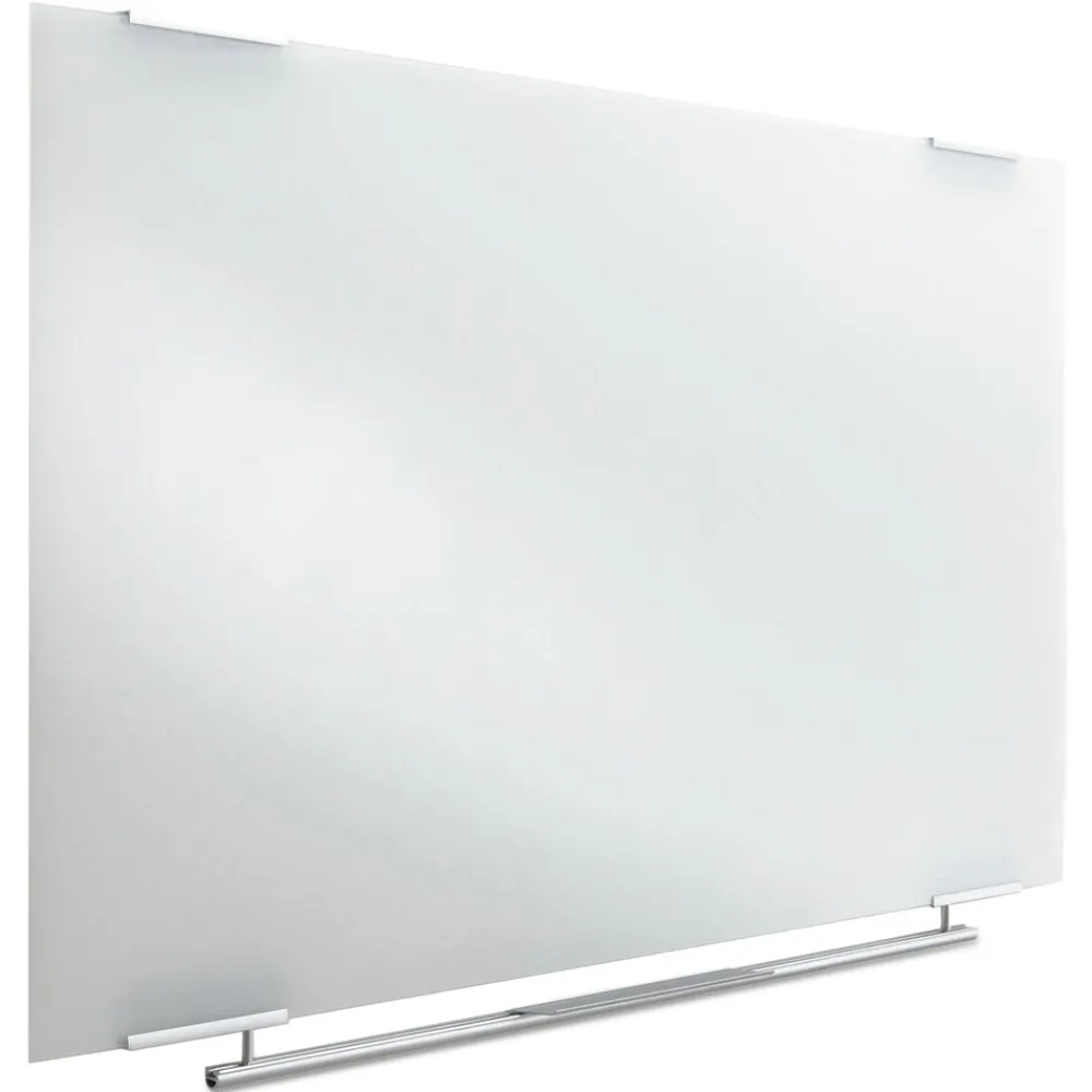 Frameless, seamless, hi-tech design with architectural quality. Combining form and function, this premium glass dry erase board features design and performance. Markers glide across the glass surface while the ultra-white backing makes writing bold and highly visible. Aluminum mounting elements allow the frameless design to “float” off the wall. 1/4 in. tempered safety glass will never stain or ghost. Includes clip-on marker and adjustable eraser tray.
