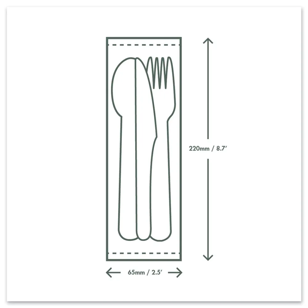 (250/Carton) Compostable Fork/Knife/Spoon/Napkin Cutlery Kits – White – VWKFSWN