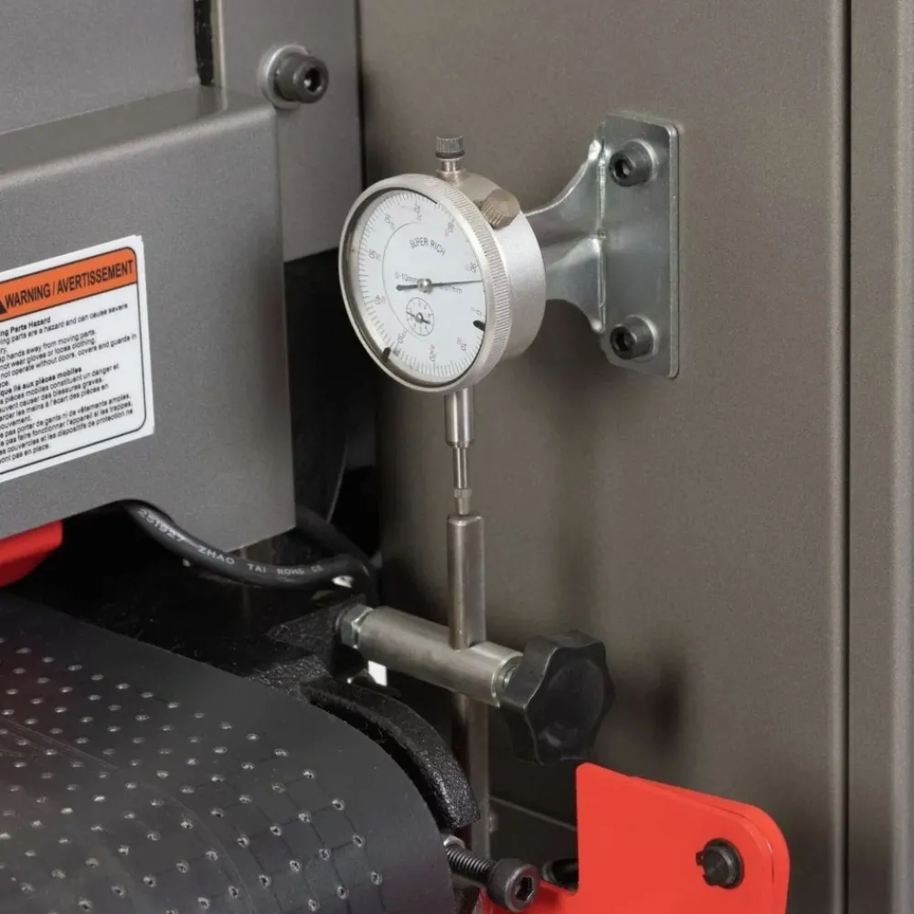 Design allows operator to safely finish multiple pieces quickly without having to hold material producing consistent finished material thickness