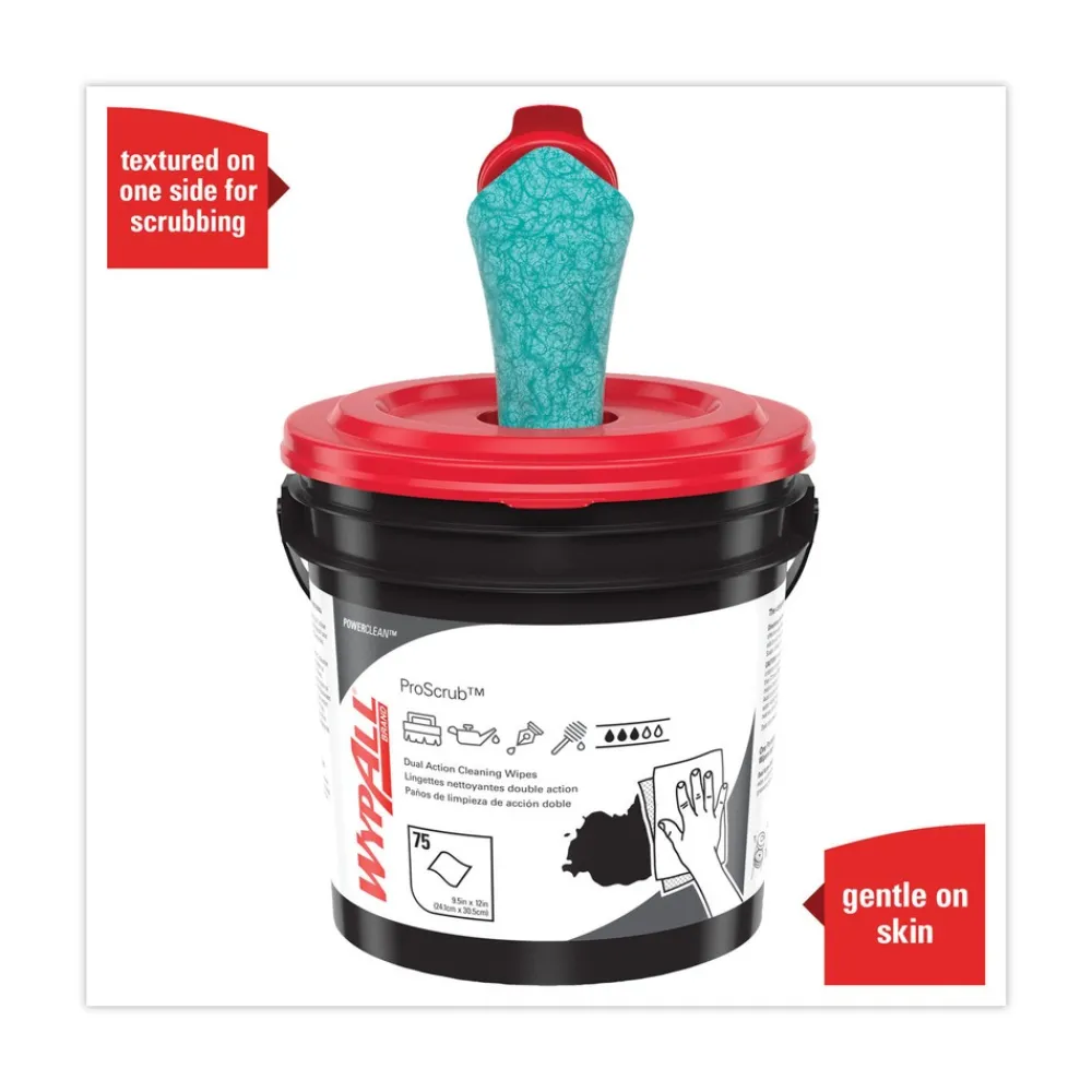 WypAll 91371 Power Clean ProScrub 9.5 in. x 12 in. Pre-Saturated Wipes – Citrus Scent, Green (75/Bucket)