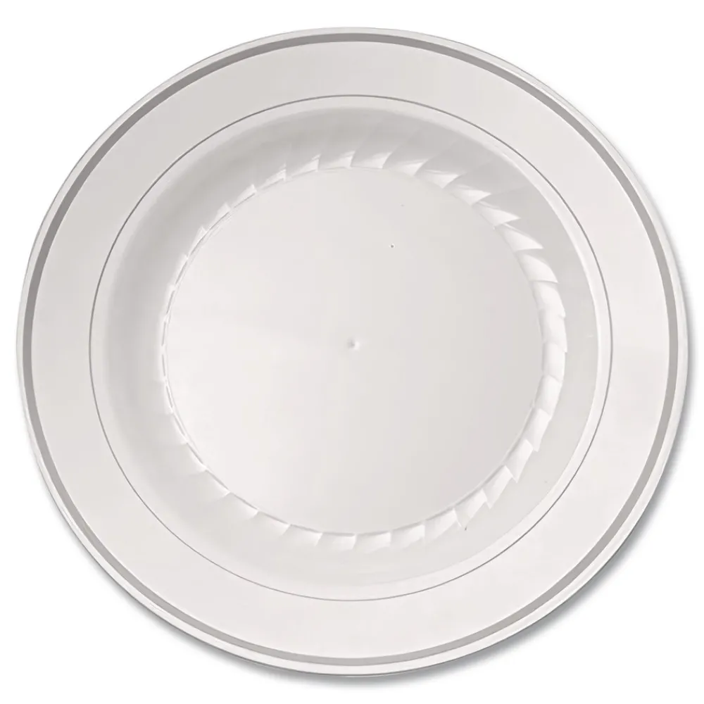 WNA RSM101210WS 10.25 in. Diameter Masterpiece Plastic Plates – White/Silver (120/Carton)