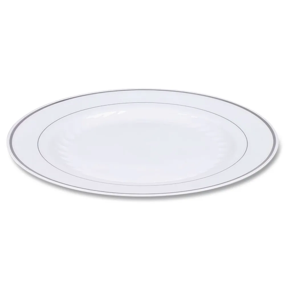 (120/Carton) 10.25 in. Diameter Masterpiece Plastic Plates – White/Silver – RSM101210WS
