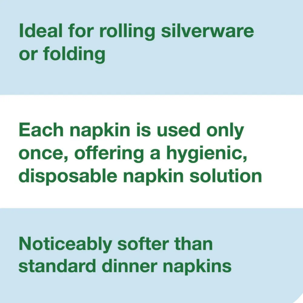Impress guests with the exceptional quality and elegance of our cloth-like disposable guest hand towels, designed with the look and feel of real cloth. Each towel is noticeably softer and bulkier than standard guest towels, providing the ultimate in absorbency, hand feel, and overall quality. Best of all, there are no hidden costs such as linen service fees, replacement fees, or laundering costs. Each hand towel is used only once, ensuring a hygienic experience for guests. This product contains 100 percent virgin fibers and comes poly-wrapped to protect the guest towels.