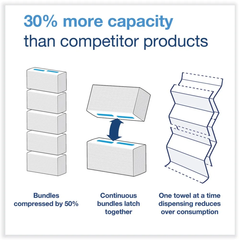 Continuous hand towels dispense smoothly, even between bundles for restroom flow with no hold ups for guests.