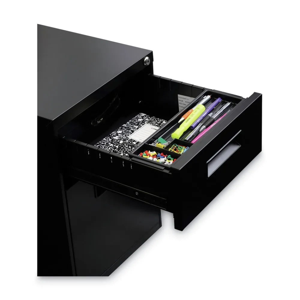 14.96 in. x 19.29 in. x 21.65 in. 2-Drawers: Box/File Legal/Letter Left or Right File Pedestal – Black – PABFBL