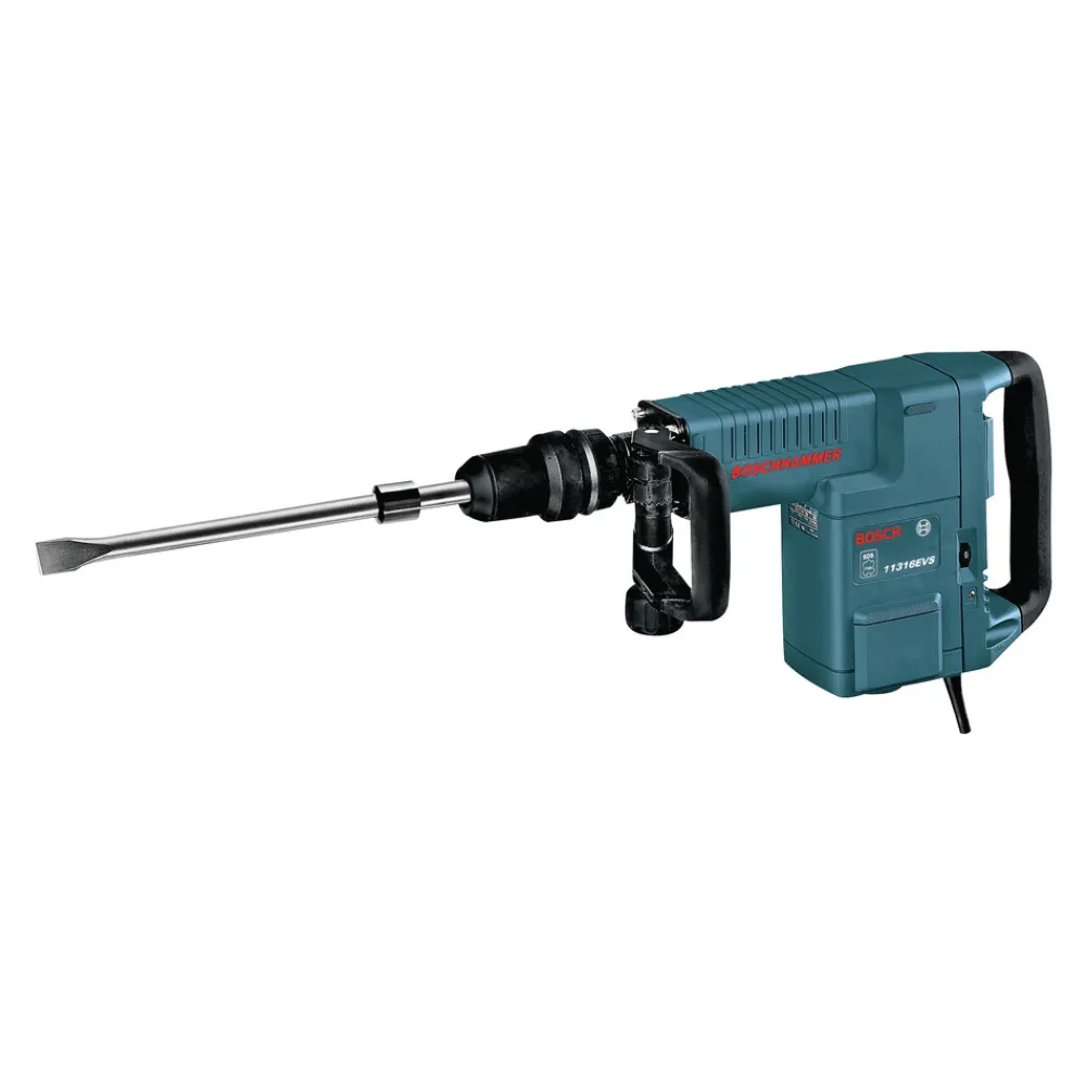 The Bosch 11316EVS SDS-max Demolition Hammer provides maximum chipping and chiseling muscle in a 14.0-amp hammer that weighs only 22.5 lbs. It delivers 12.4 ft.-lbs. of impact energy for professional power and terrific performance-to-weight ratio. This hammer provides Constant Response circuitry for constant load under pressure as well as smooth starts. And it has a Vario-Lock positioning feature, which allows the user to rotate the chisel for maximum working angles.