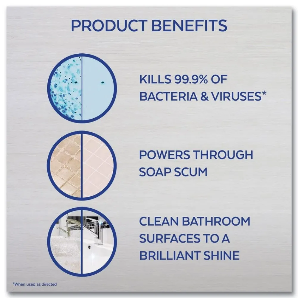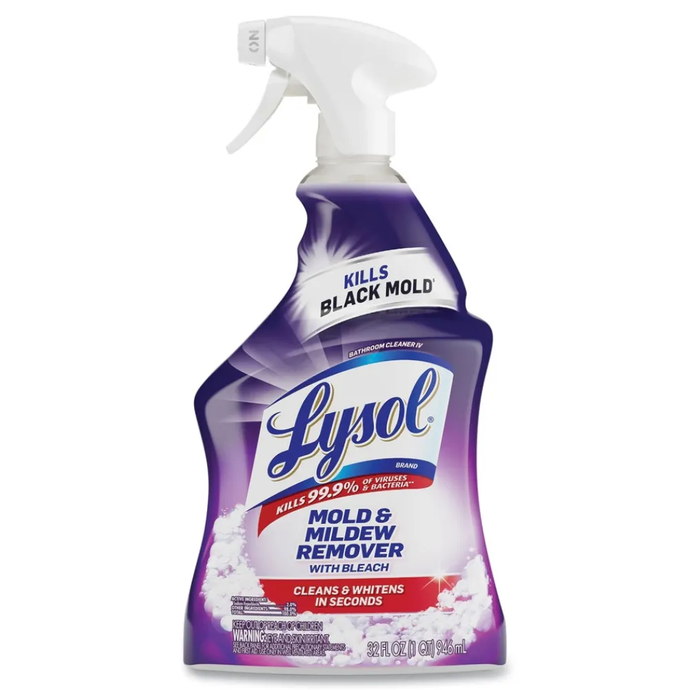 Arm cleaning staff with a powerful tool against germs, mold and mildew: Lysol Bathroom Cleaner Mold & Mildew Remover. Optimize facility cleaning time with a versatile formula that whitens while destroying soap scum. Lysol kills 99.9% of viruses and bacteria, including Rotavirus WA and Rhinovirus Type 39, when used as directed on hard, non-porous surfaces. Remove soap scum with this multi-purpose formula that whitens and sanitizes in seconds when used as directed. Help stop the spread of germs in bathtubs and sinks and on glazed ceramic tile and counters with the easy-to-use spray bottle.