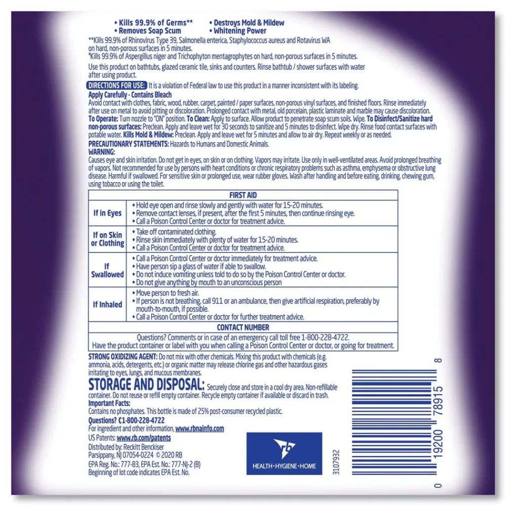 Target tough soap scum, mold and mildew with the easy spray nozzle and bleach formula.